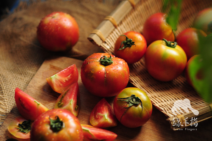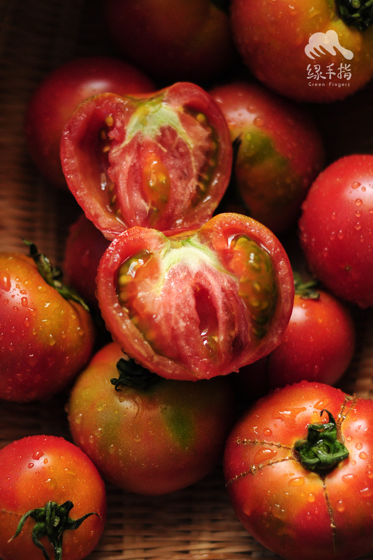 西红柿的口感除了与土壤、气候、种植方法等相关外,还有一个非常重要的因素是品种,前面4年多,建均试种了60多个西红柿品种,除了瑞粉,也选择了脆皮青肩的这款铁皮西红柿,口感酸甜,适宜当水果生食。