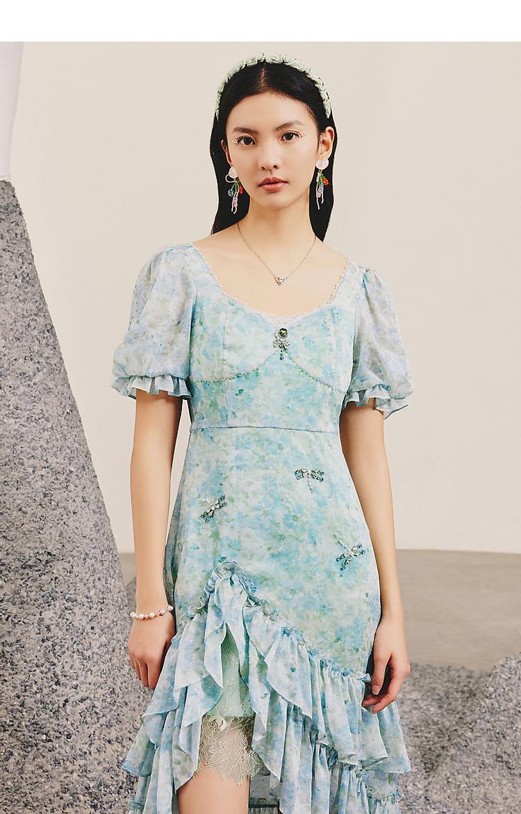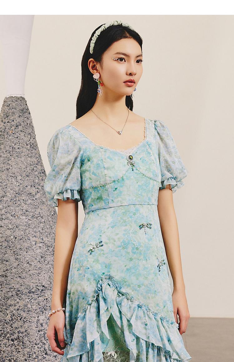 MAXRIENY | 【商场同款】MAXRIENY蜻蜓系列春日清新印花连衣裙修身(货号:MC88DR072F60)