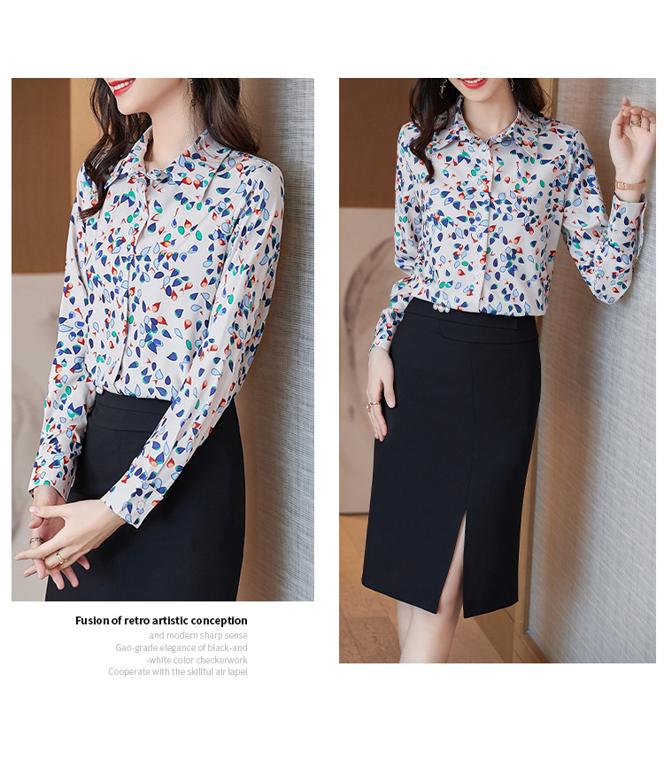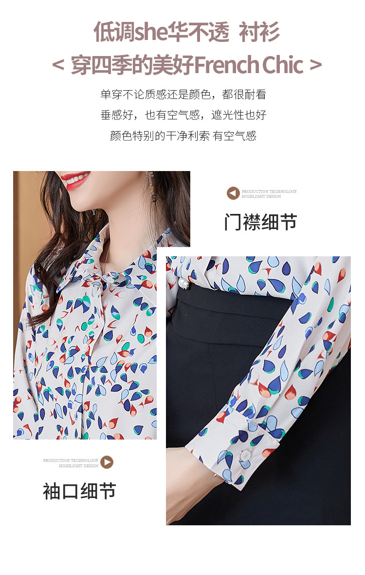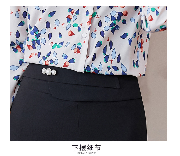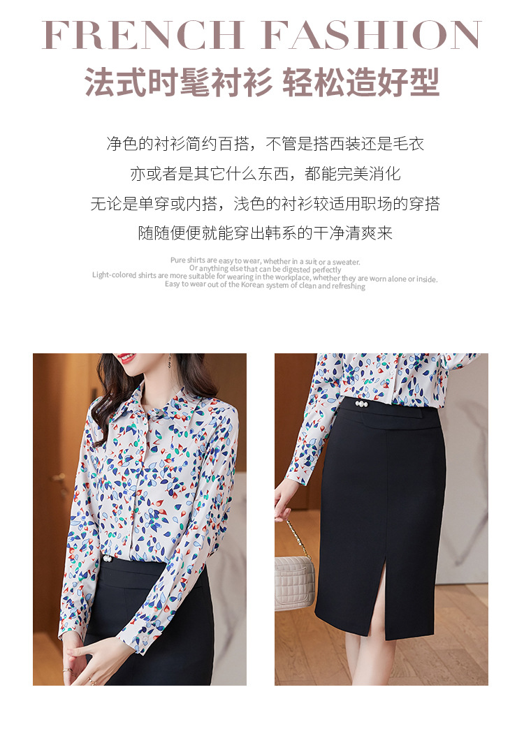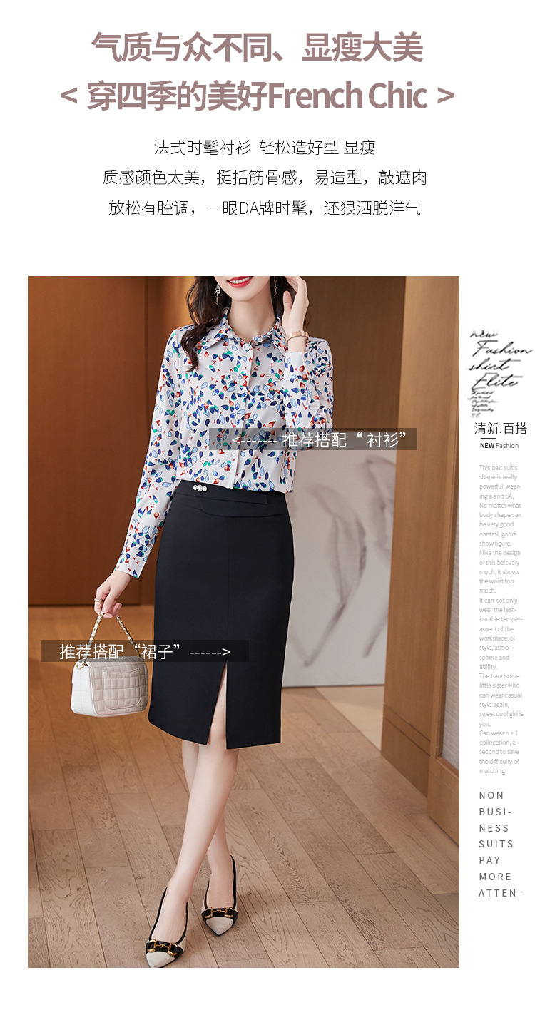XZ-AL-651135268066衬衫女长袖雪纺2021修身显瘦韩版气质淑女碎花潮百搭职业套装套裙