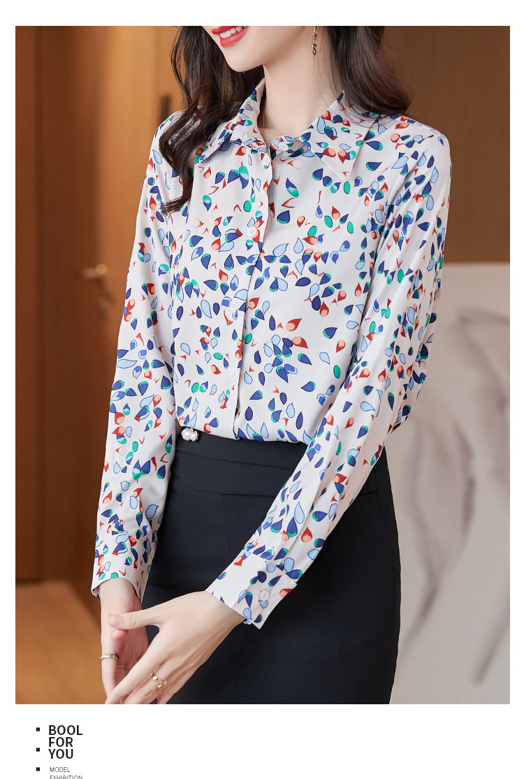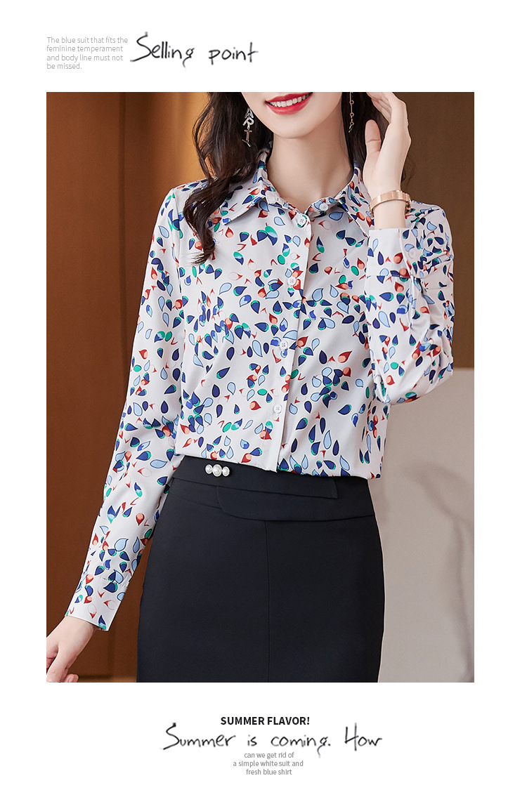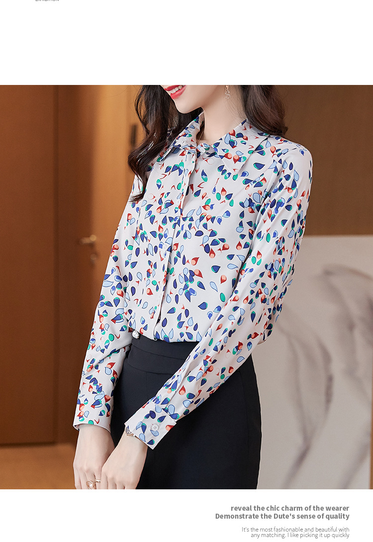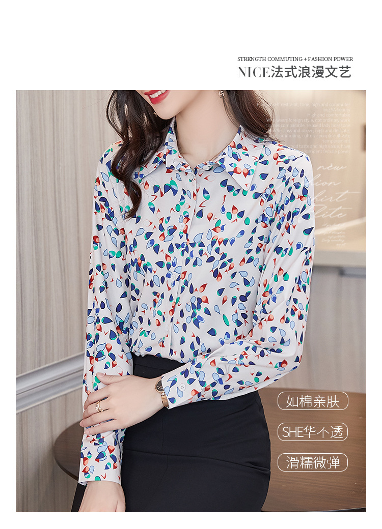 XZ-AL-651135268066衬衫女长袖雪纺2021修身显瘦韩版气质淑女碎花潮百搭职业套装套裙