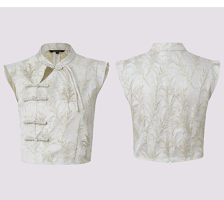 清冷新中式收腰上衣雪纺衫高级气质感女装修身显瘦(货号:MF86TP002C1003)