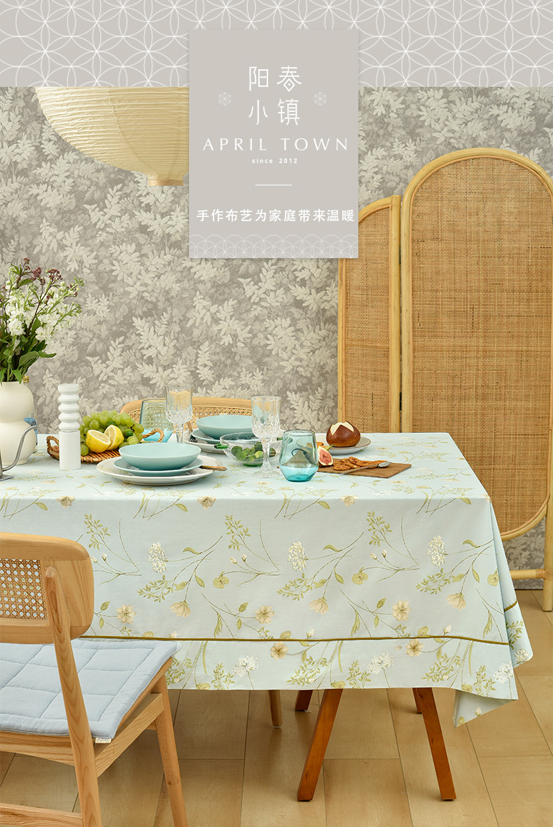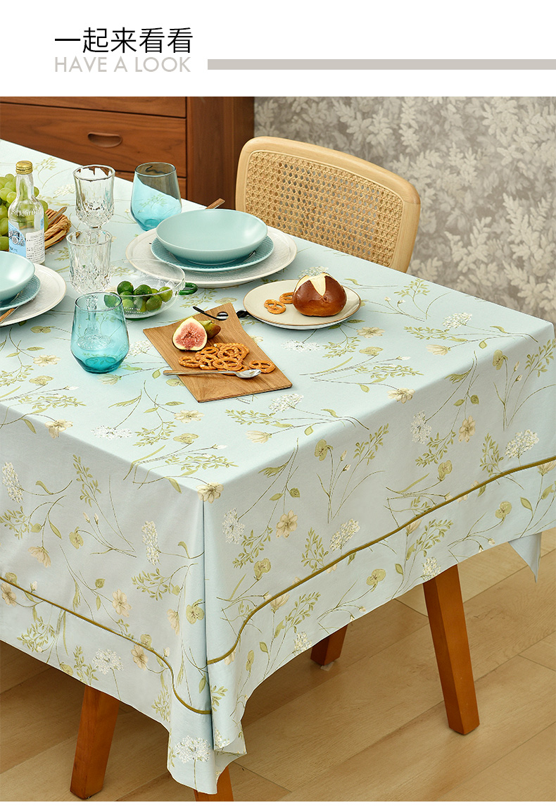 蓝色清新小花餐桌布
