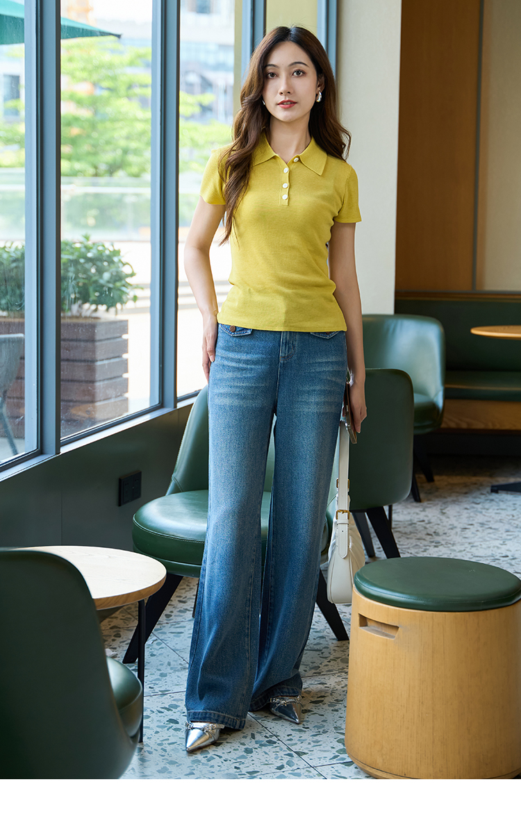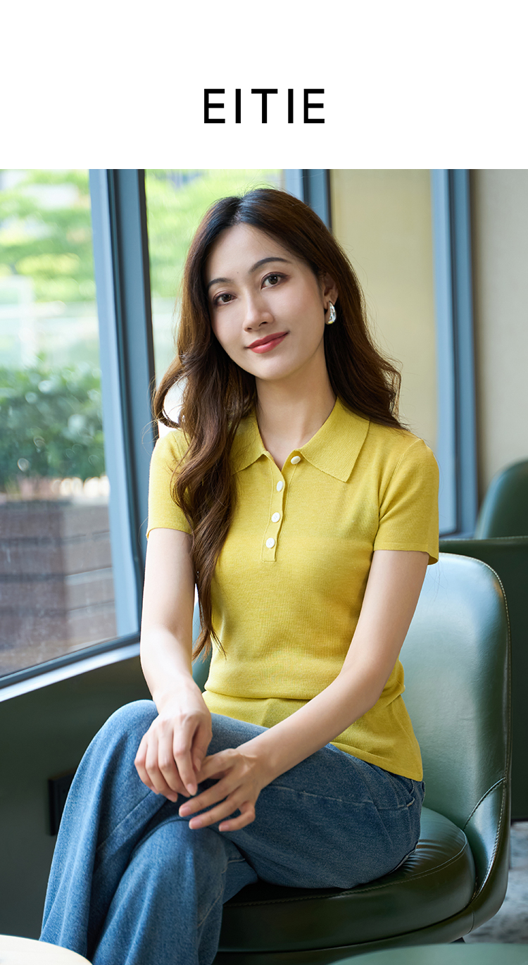 EITIE爱特爱气质商务通勤简约polo翻领修身显瘦针织衫2025夏新款B2501622