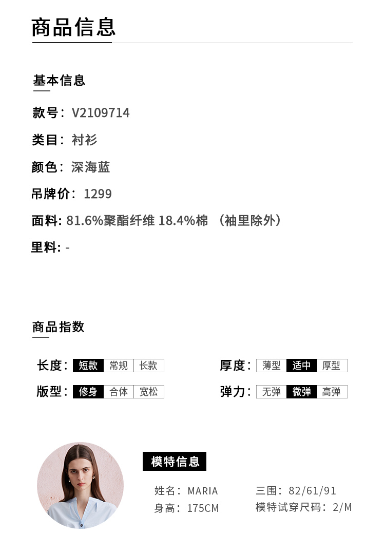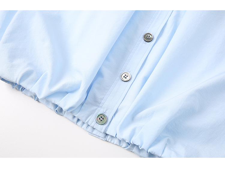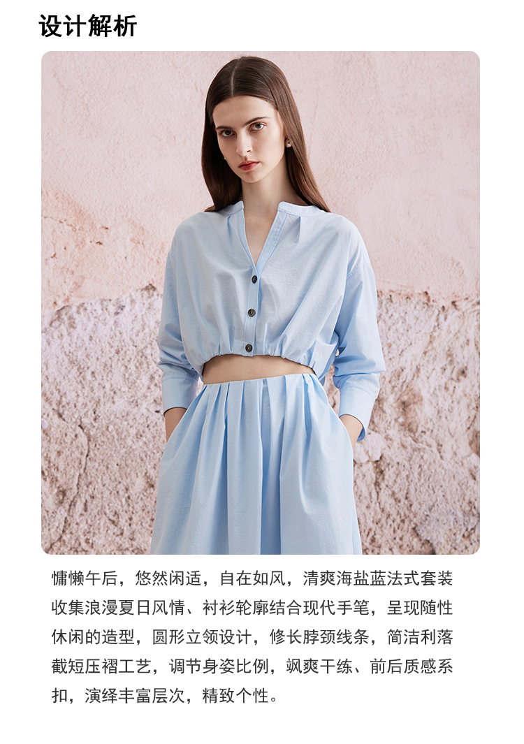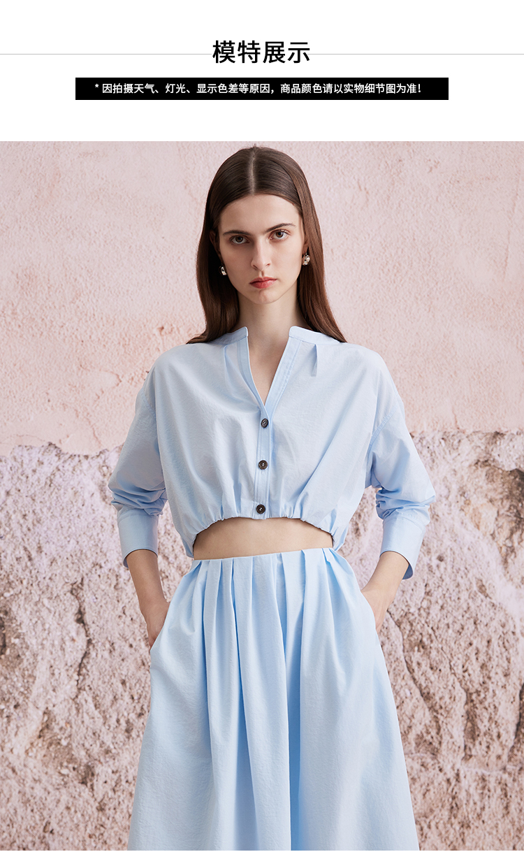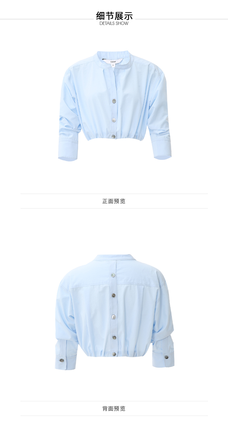 VIMAGE纬漫纪夏季新款时尚短款露脐蓝色衬衫V2109714