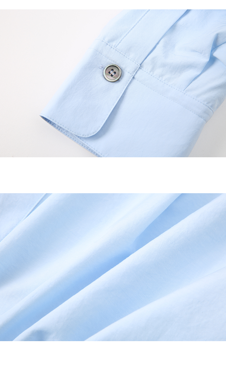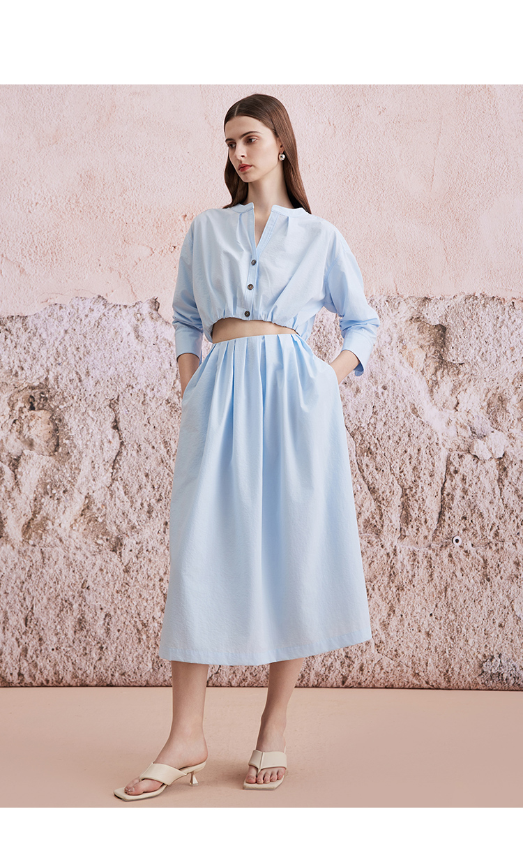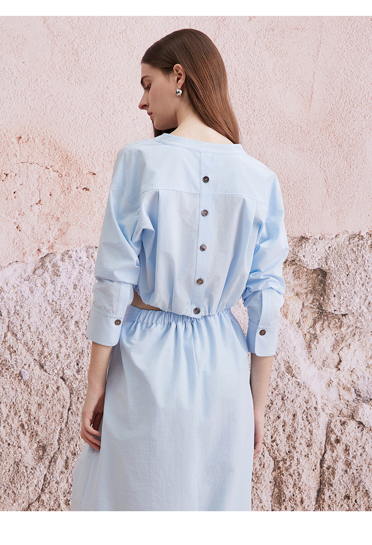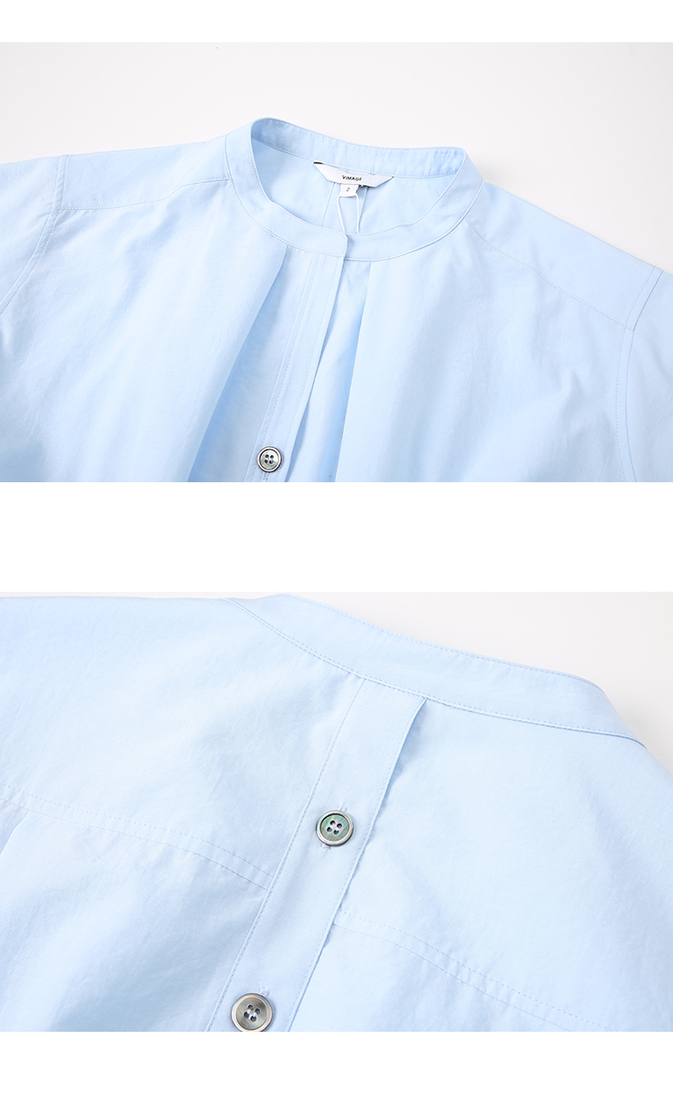 VIMAGE纬漫纪夏季新款时尚短款露脐蓝色衬衫V2109714