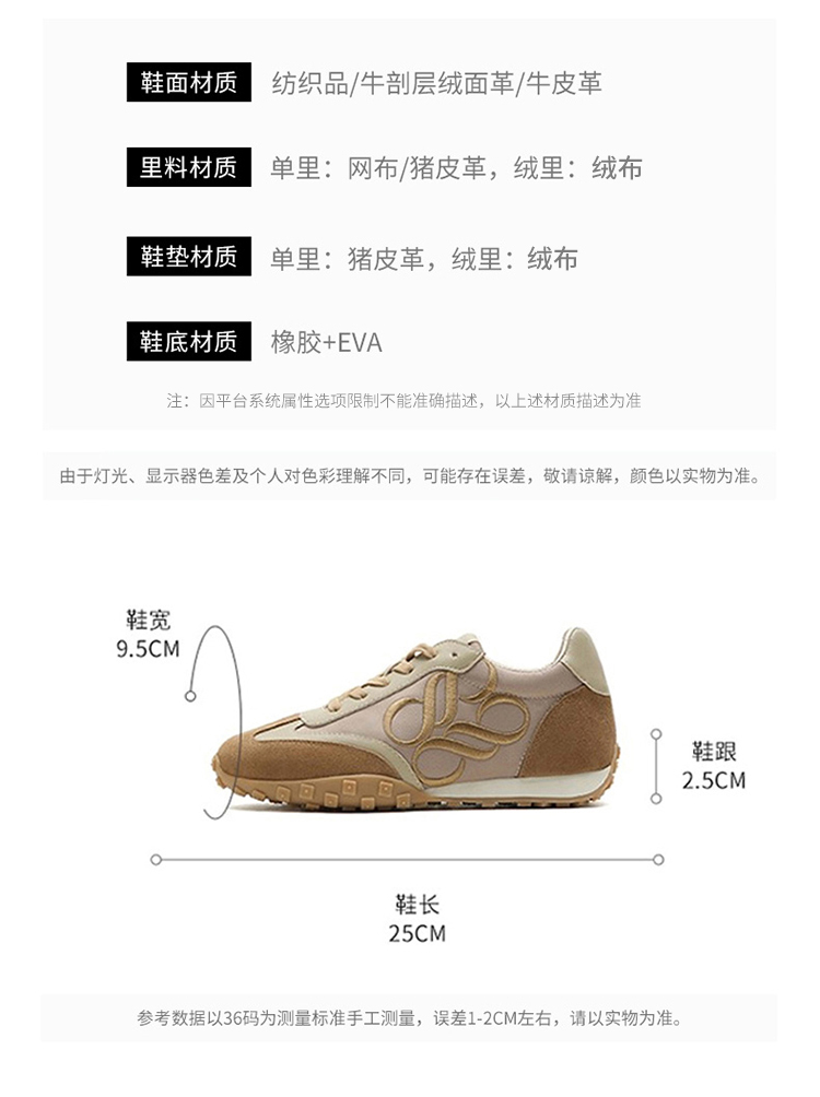 Joy&peace真美诗 董洁同款真美诗小彩蛋2025春运动休闲阿甘鞋复古德训鞋女29801AM5