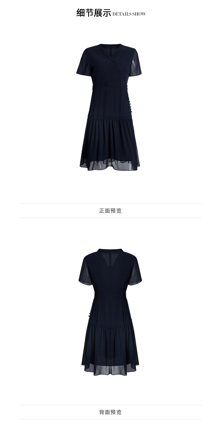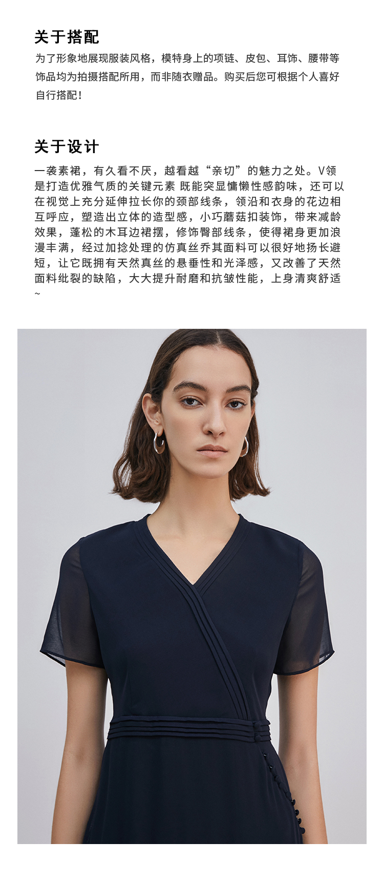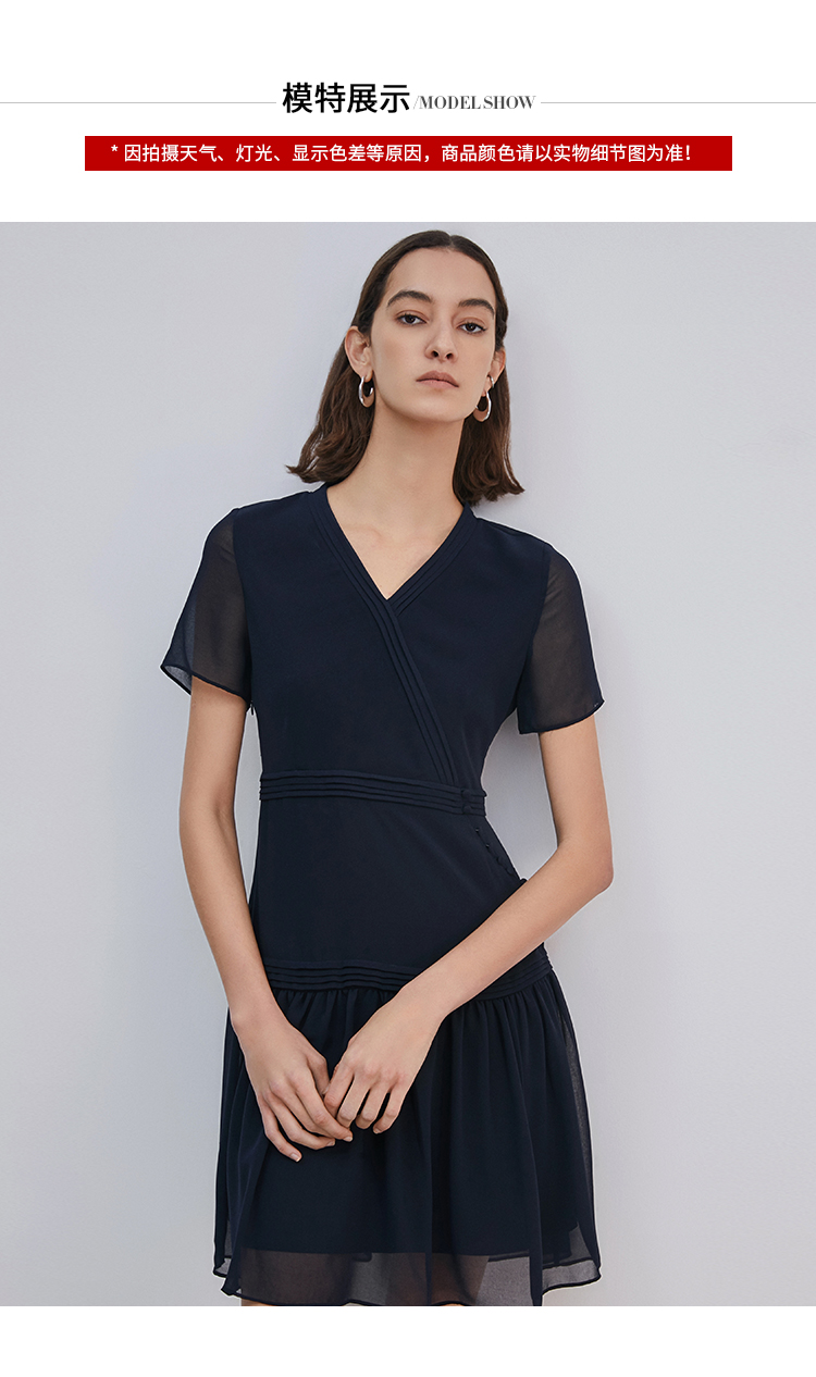EITIE爱特爱春季新款气质翻领镂空蕾丝七分袖连衣裙女中裙A2007405