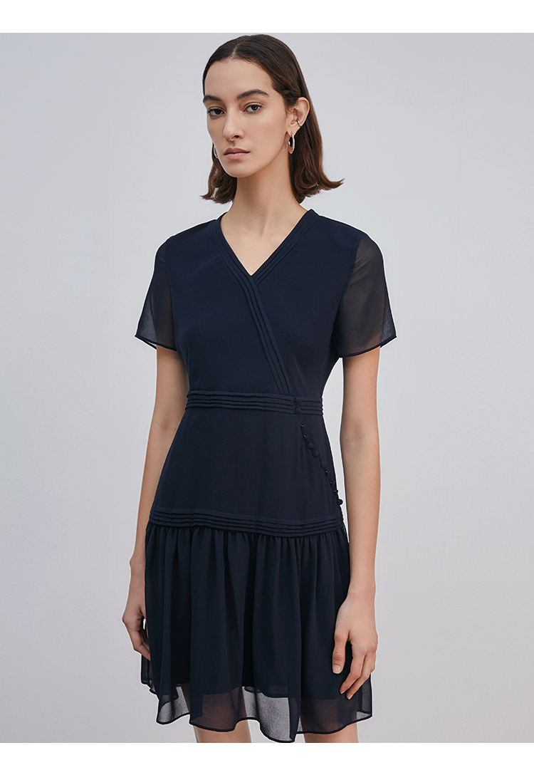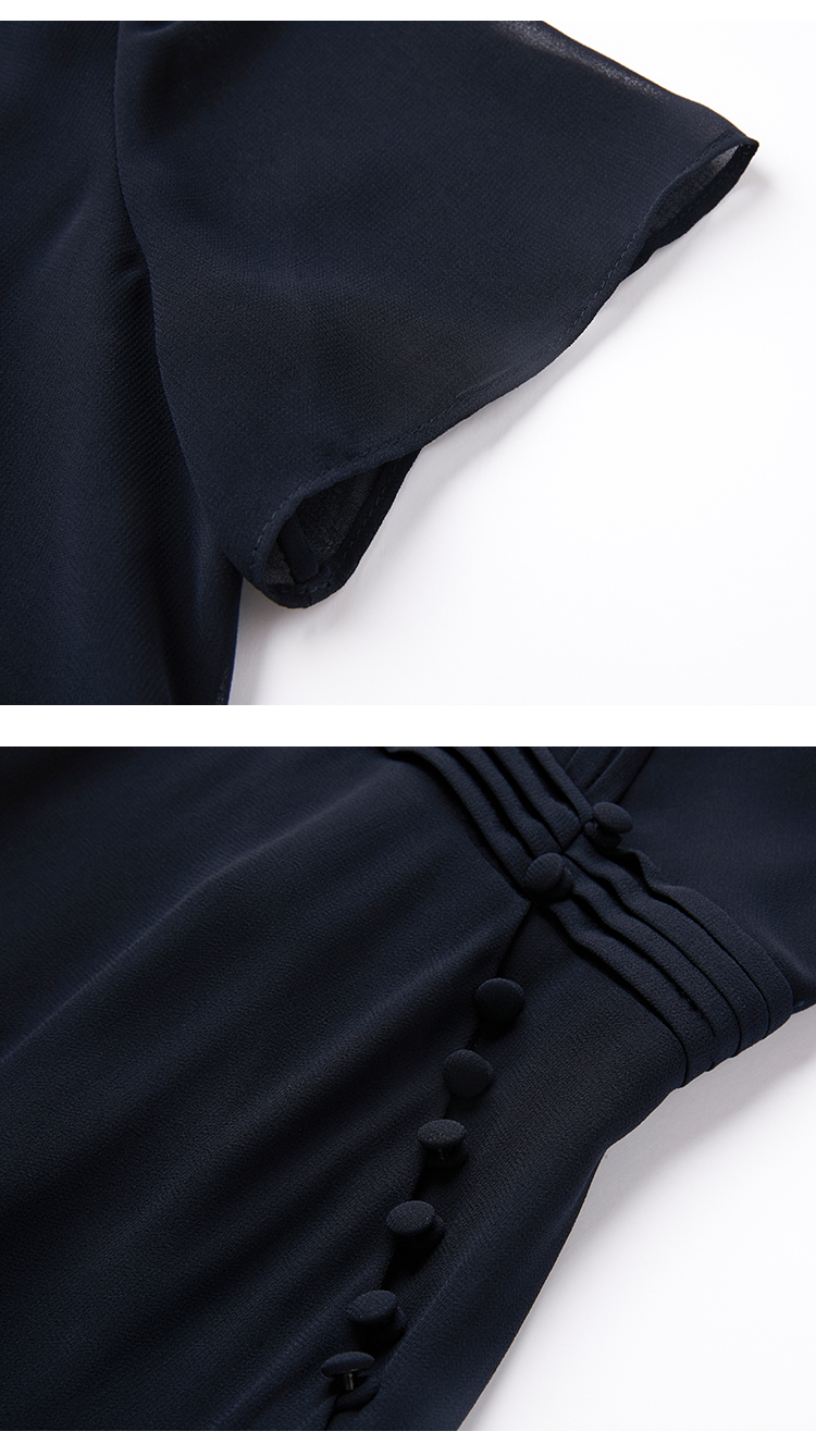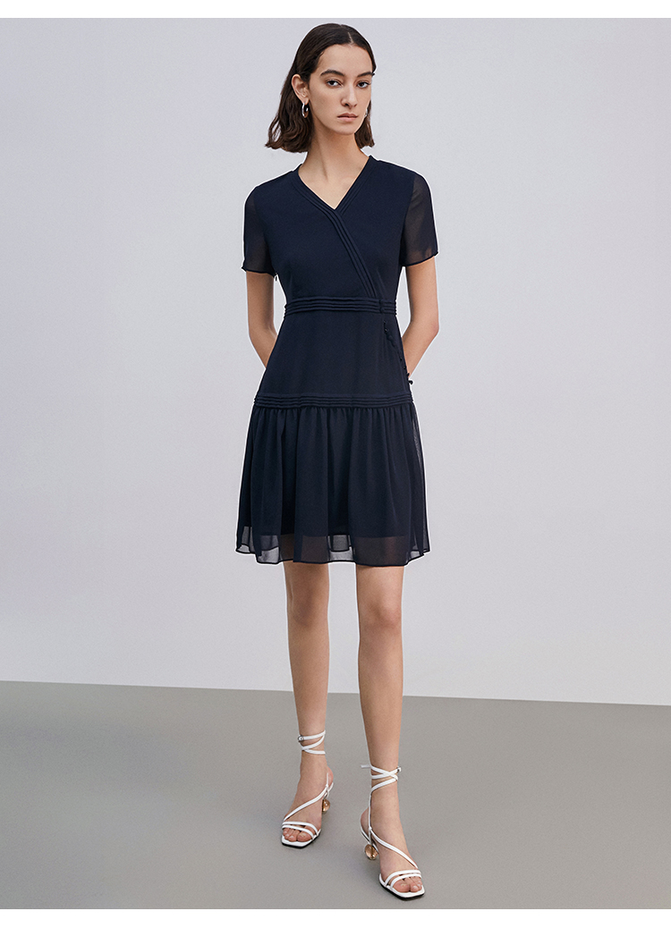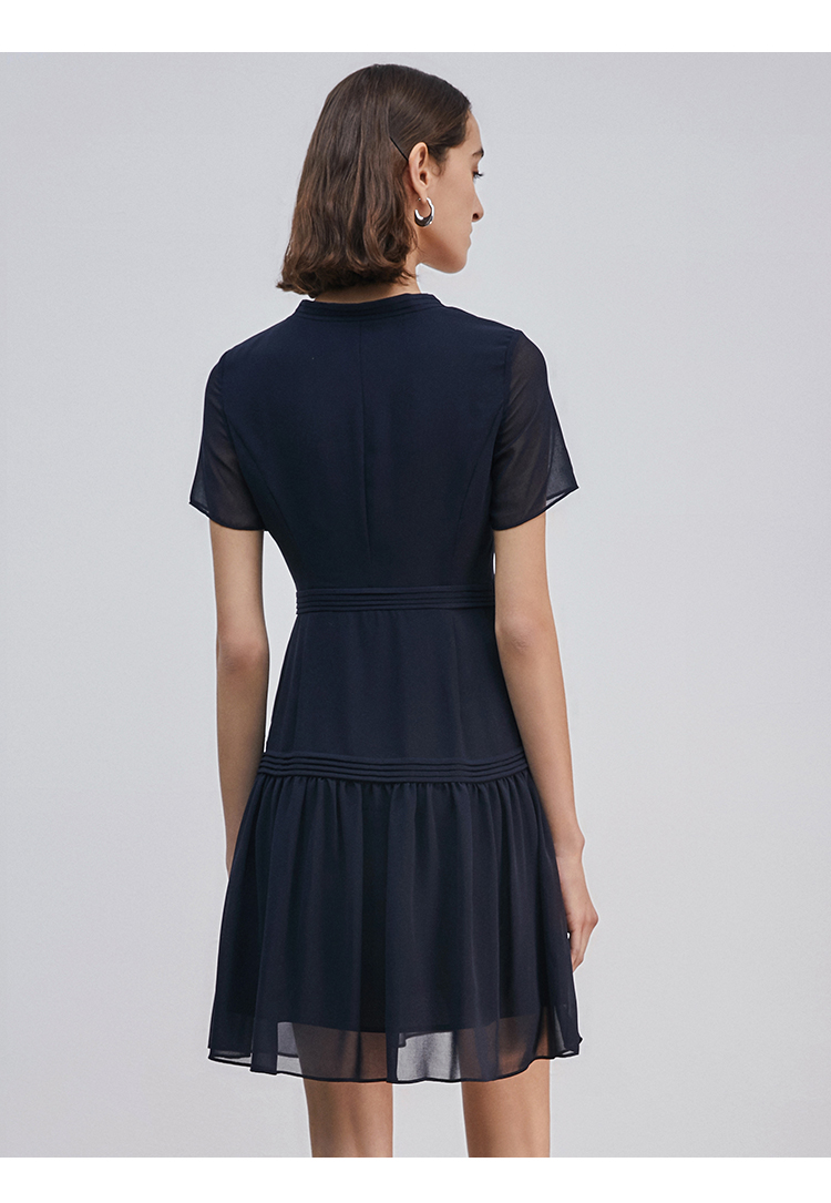 EITIE爱特爱春季新款气质翻领镂空蕾丝七分袖连衣裙女中裙A2007405