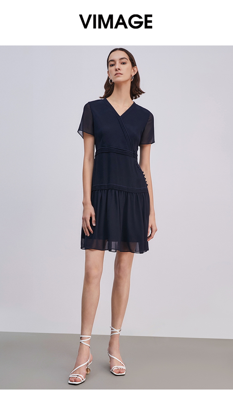 VIMAGE纬漫纪秋款气质翻领双排扣风衣外套女短款时尚经典VA2104109