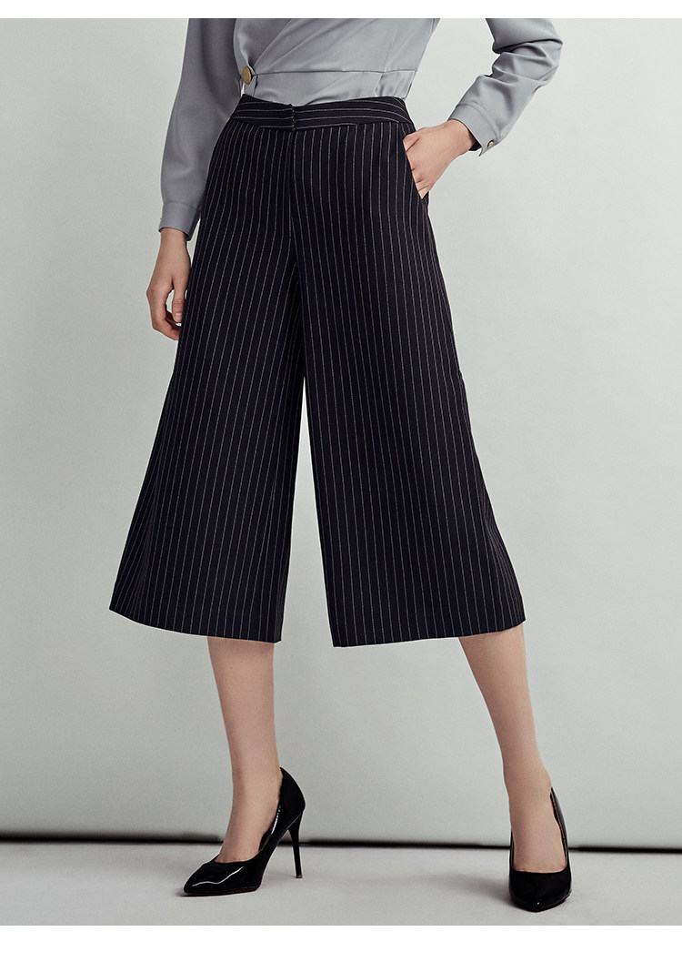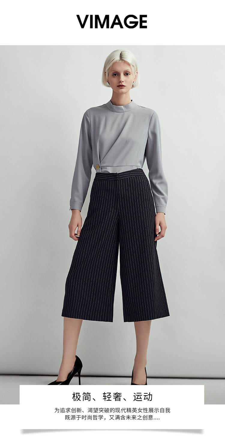 VIMAGE纬漫纪时尚通勤显瘦条纹百搭简约阔腿七分裤女V1405001D