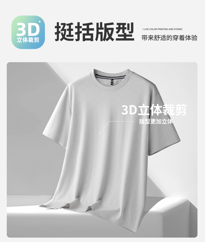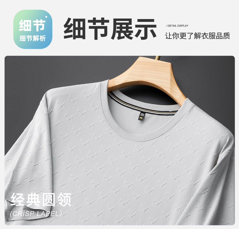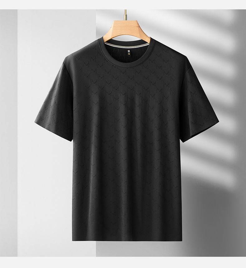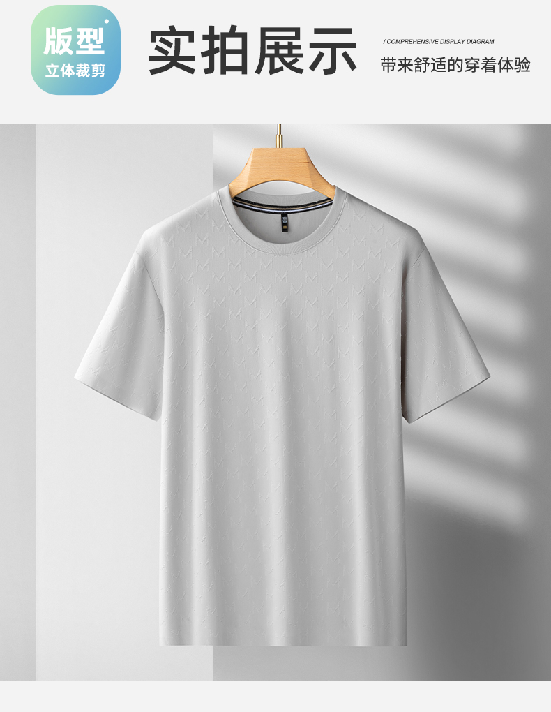 【冰丝无痕】【DDS】大依优型大码男装提花短袖T恤透气加肥加大大号半袖上衣男士胖子