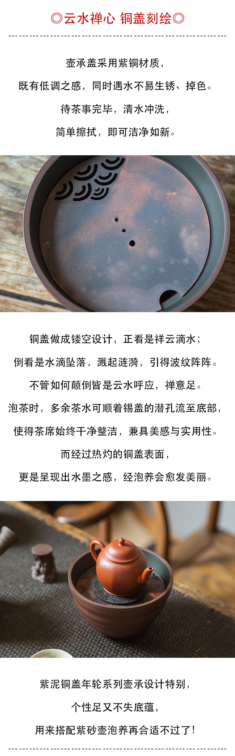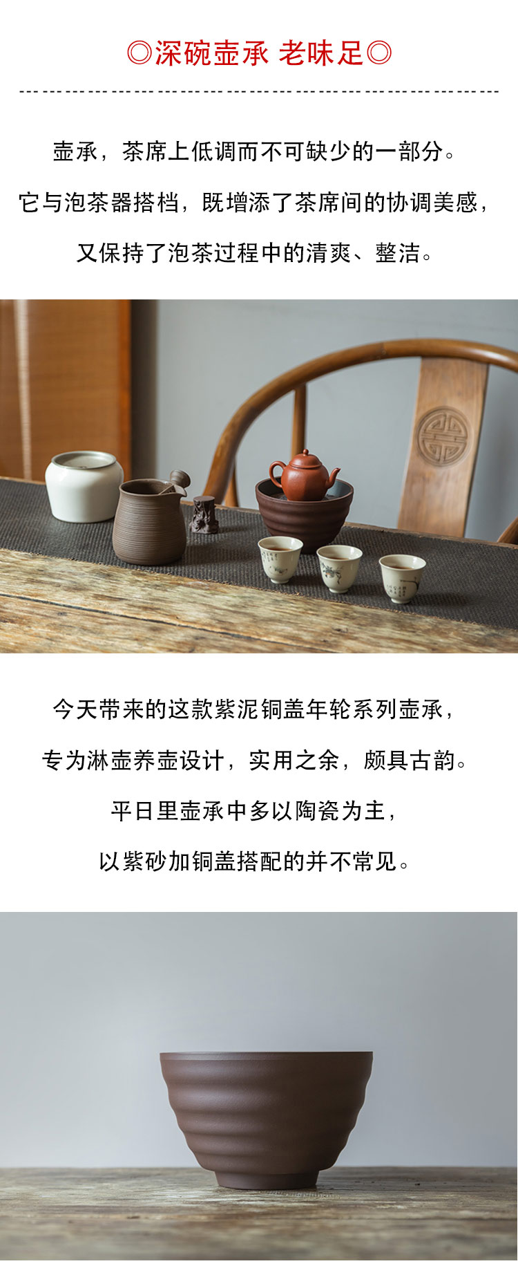 茶香记 紫泥铜盖年轮系列壶承适淋壶养壶干泡台盛水量大茶道零配