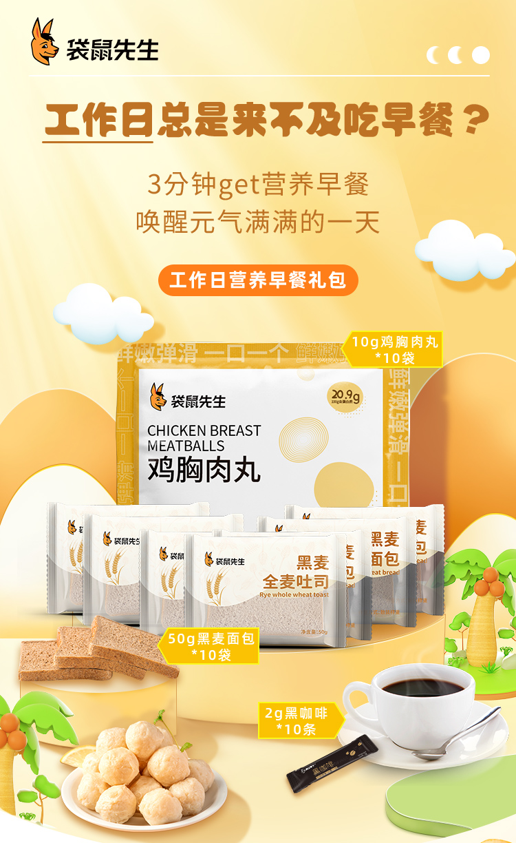 【满减】 工作日营养早餐包(面包+黑咖啡+鸡胸肉丸)