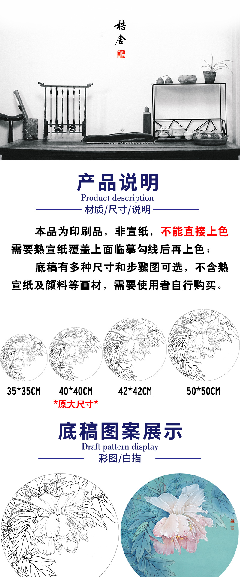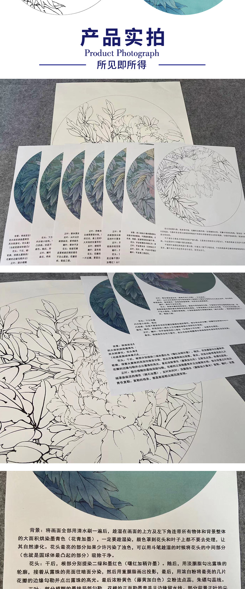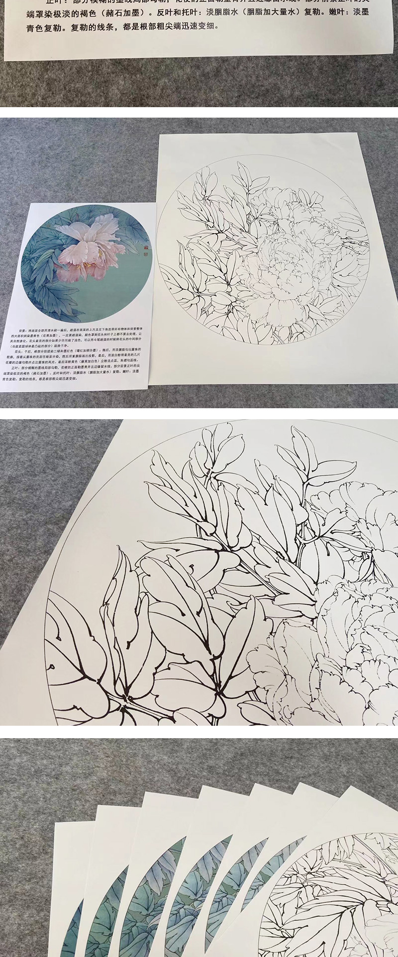 【有步骤、大彩图】工笔画白描底稿《酒醉杨妃》牡丹花鸟线稿KG10