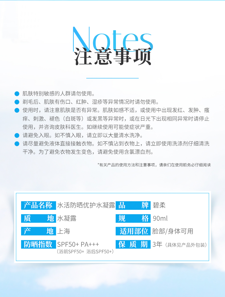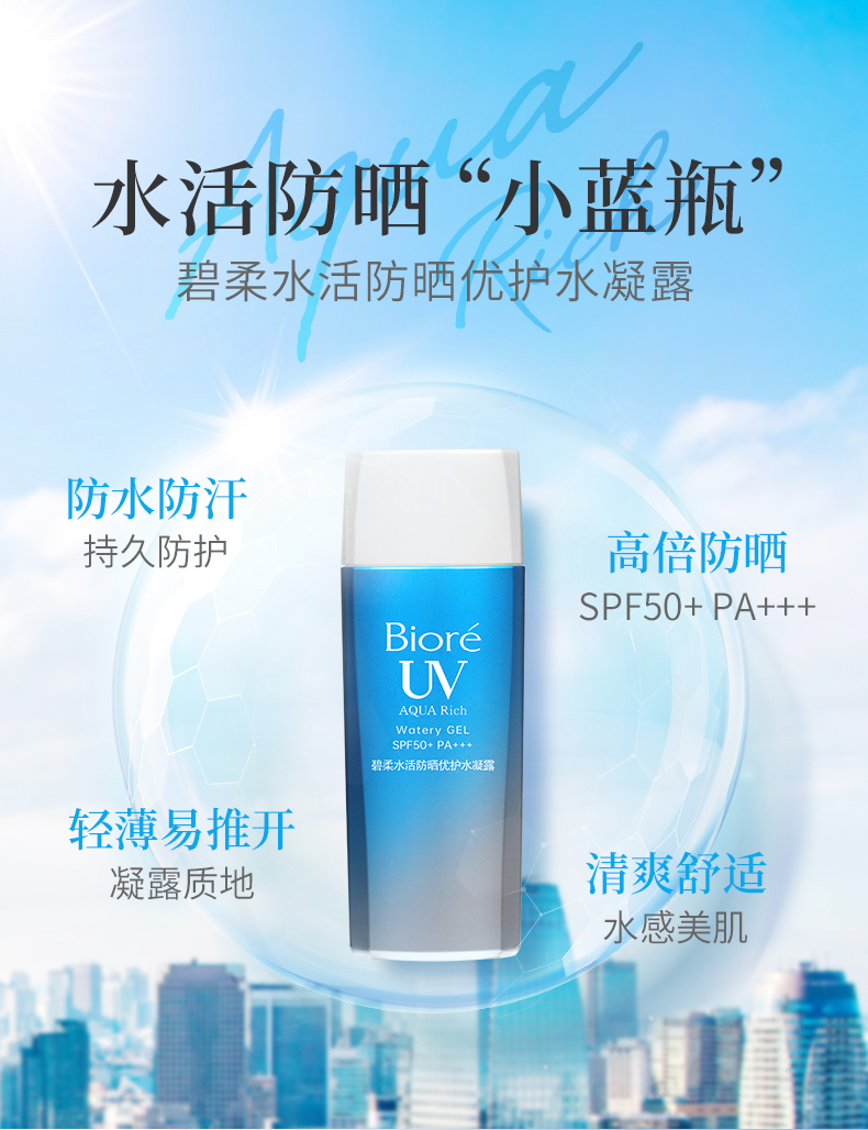 【门店直发】贸易版Biore碧柔水活防晒优护水凝露防水防汗水润凝蜜