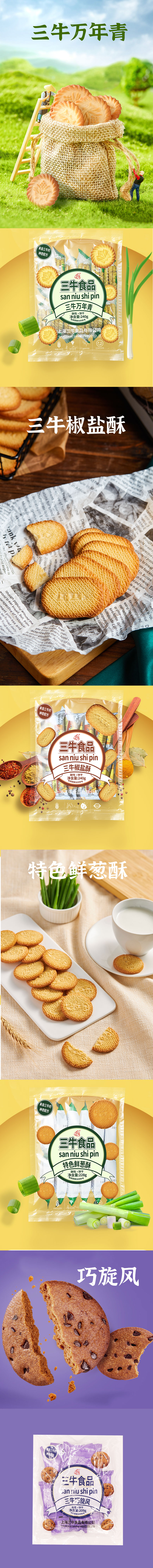 三牛袋装饼干 240g万年青 228g特色鲜葱酥 240g椒盐酥 209g巧旋风巧克力逗曲奇饼干 早餐休闲零食