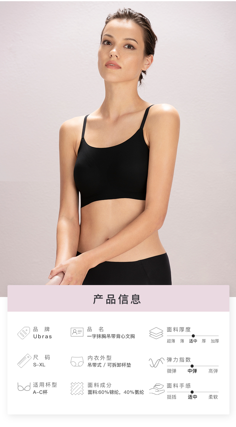 Ubras一字抹胸吊带背心文胸内衣款柔软高弹女士胸罩