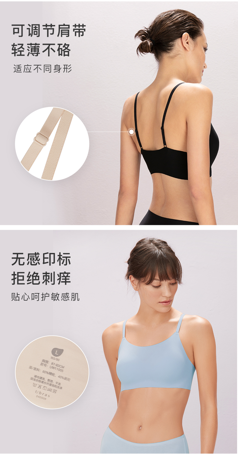 Ubras无尺码V领背心文胸无痕无钢圈内衣女透气胸罩