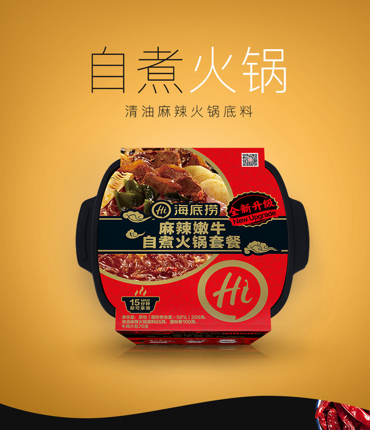 海底捞自煮火锅清油麻辣嫩牛435g懒人自助自热方便速食即食小火锅