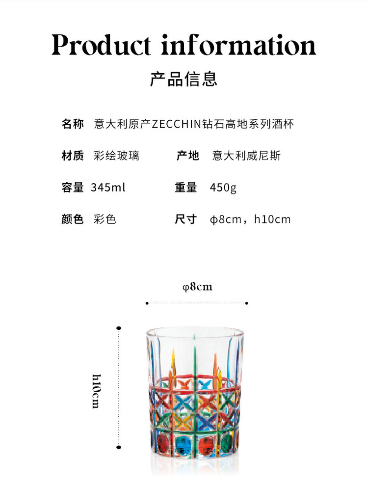 【ZECCHIN】意大利ZECCHIN钻石高地系列多彩平底杯酒杯水杯