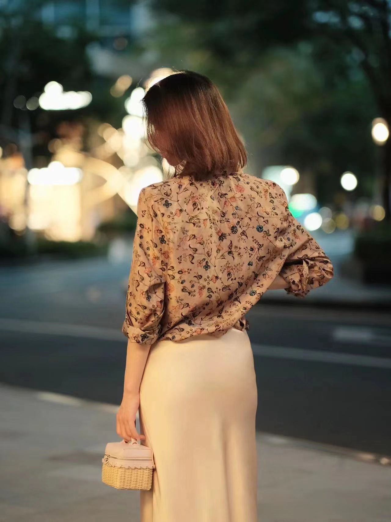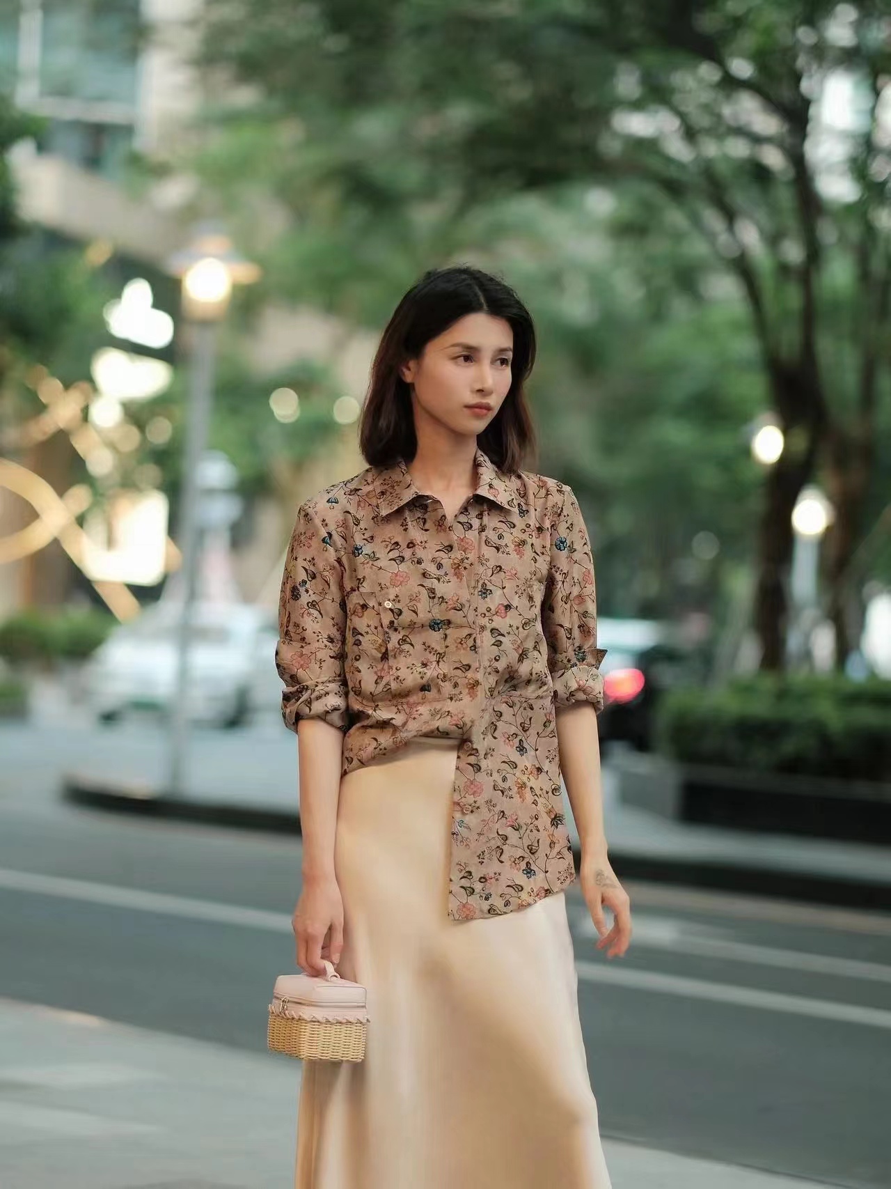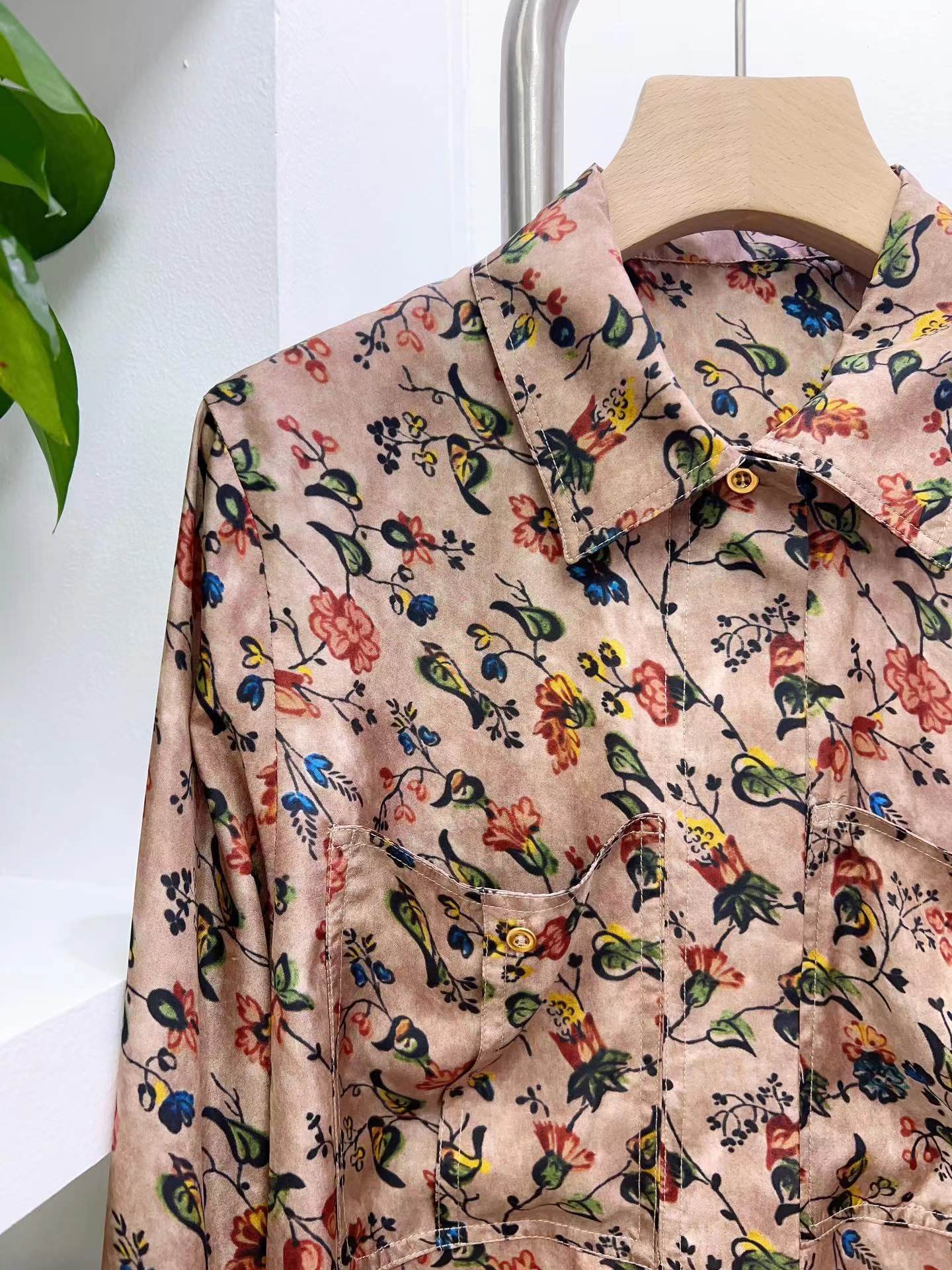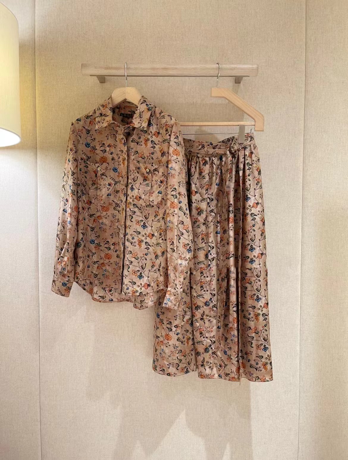 【à perles】复古花卉印花纯真丝衬衣和伞裙 飘逸大裙摆【7个工作日】
