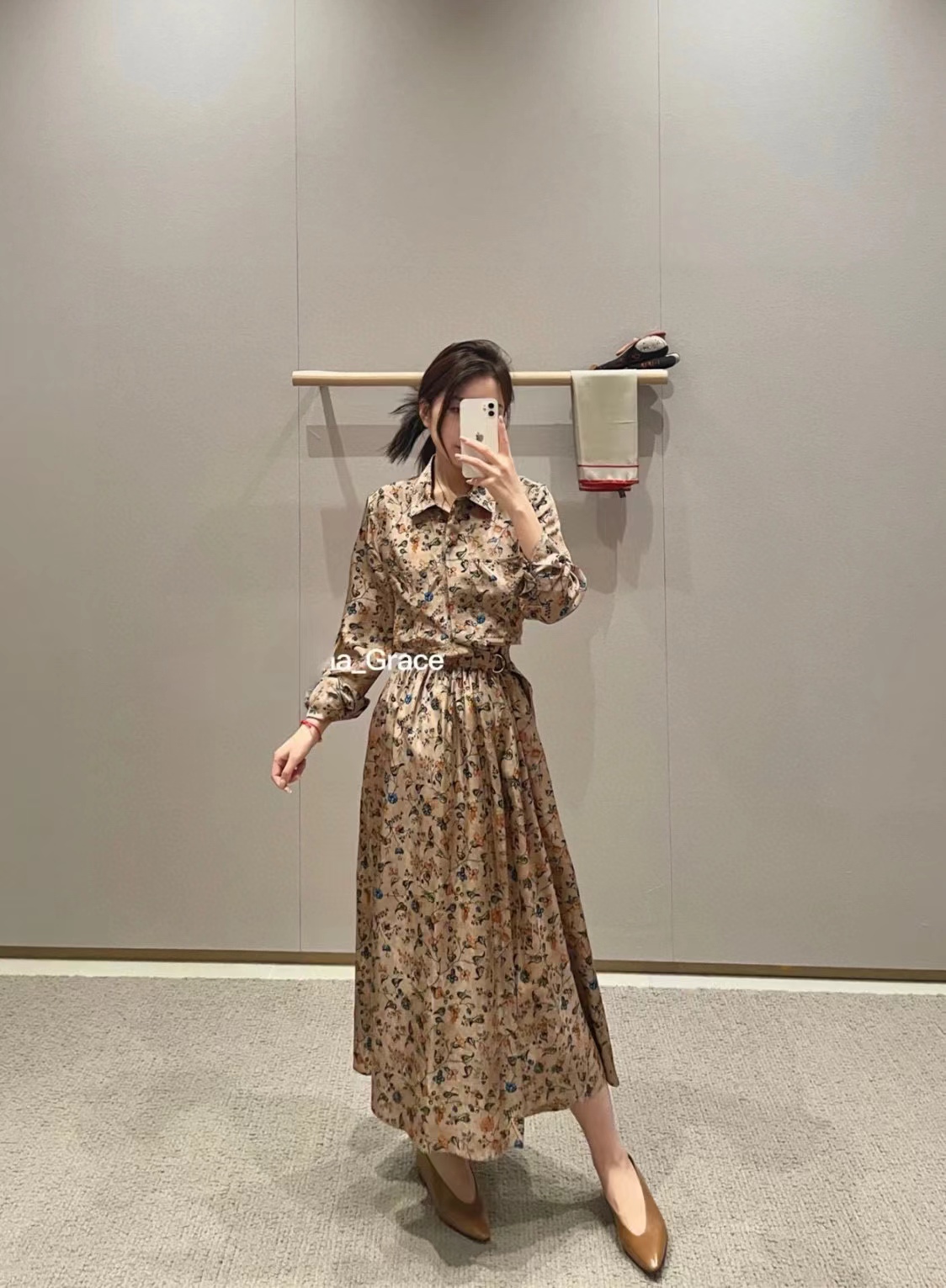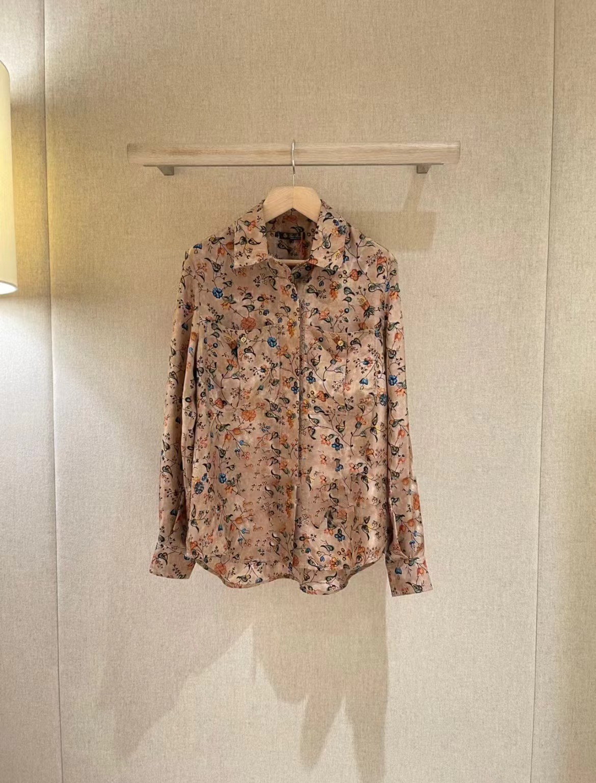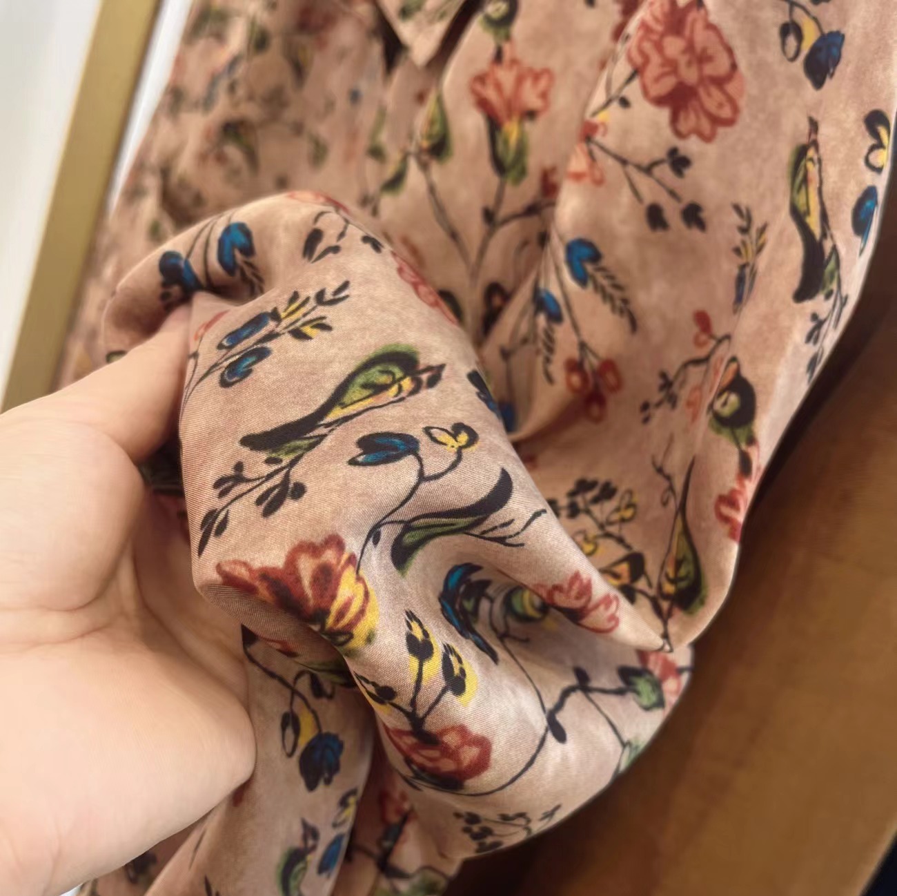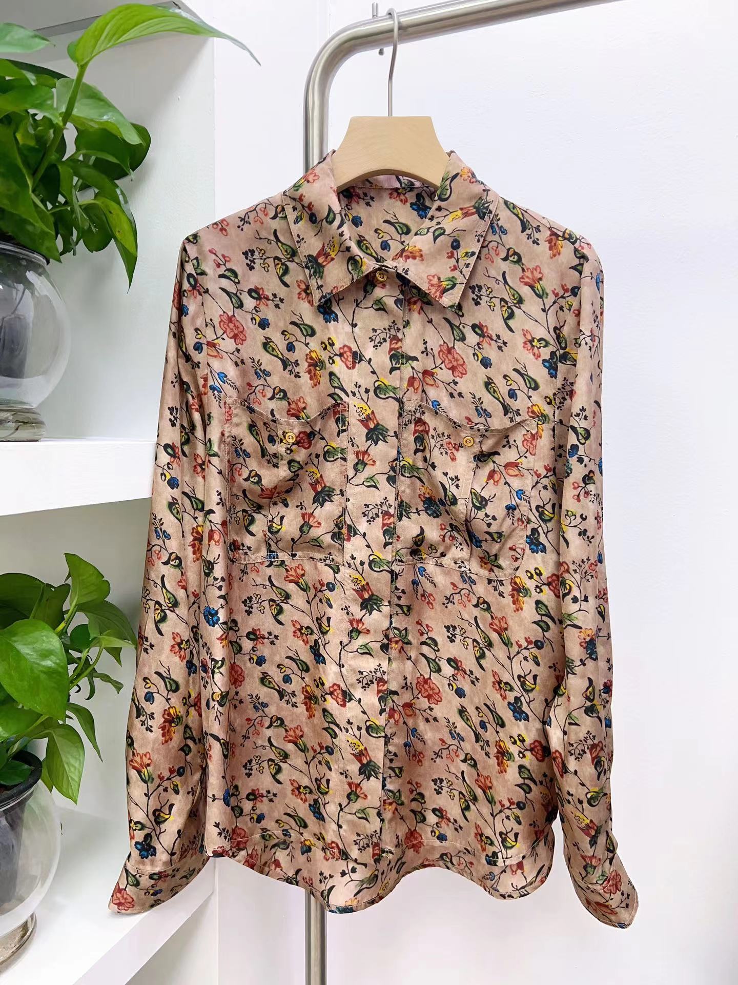【à perles】复古花卉印花纯真丝衬衣和伞裙 飘逸大裙摆【7个工作日】