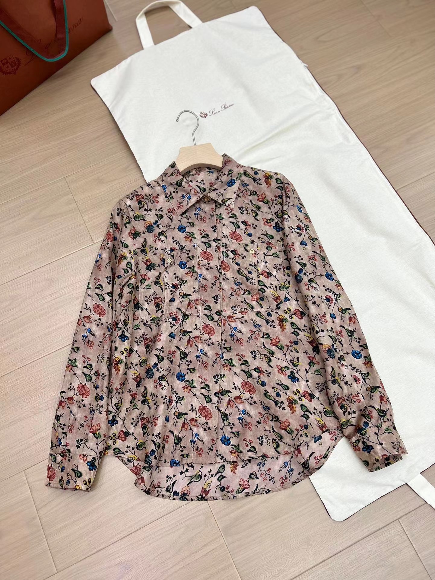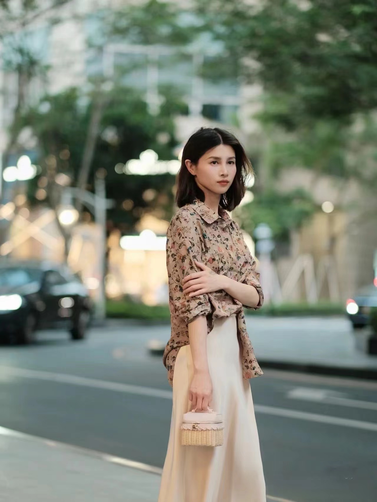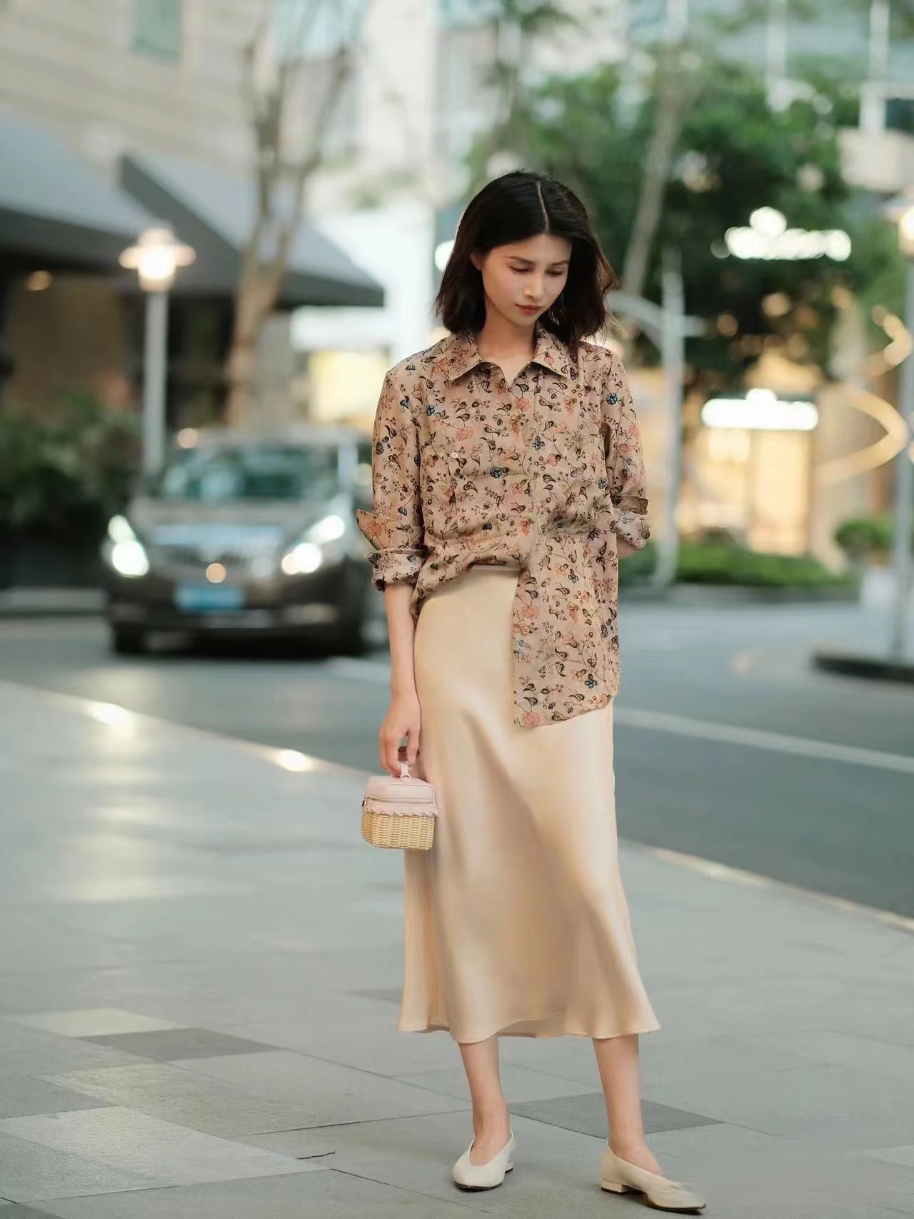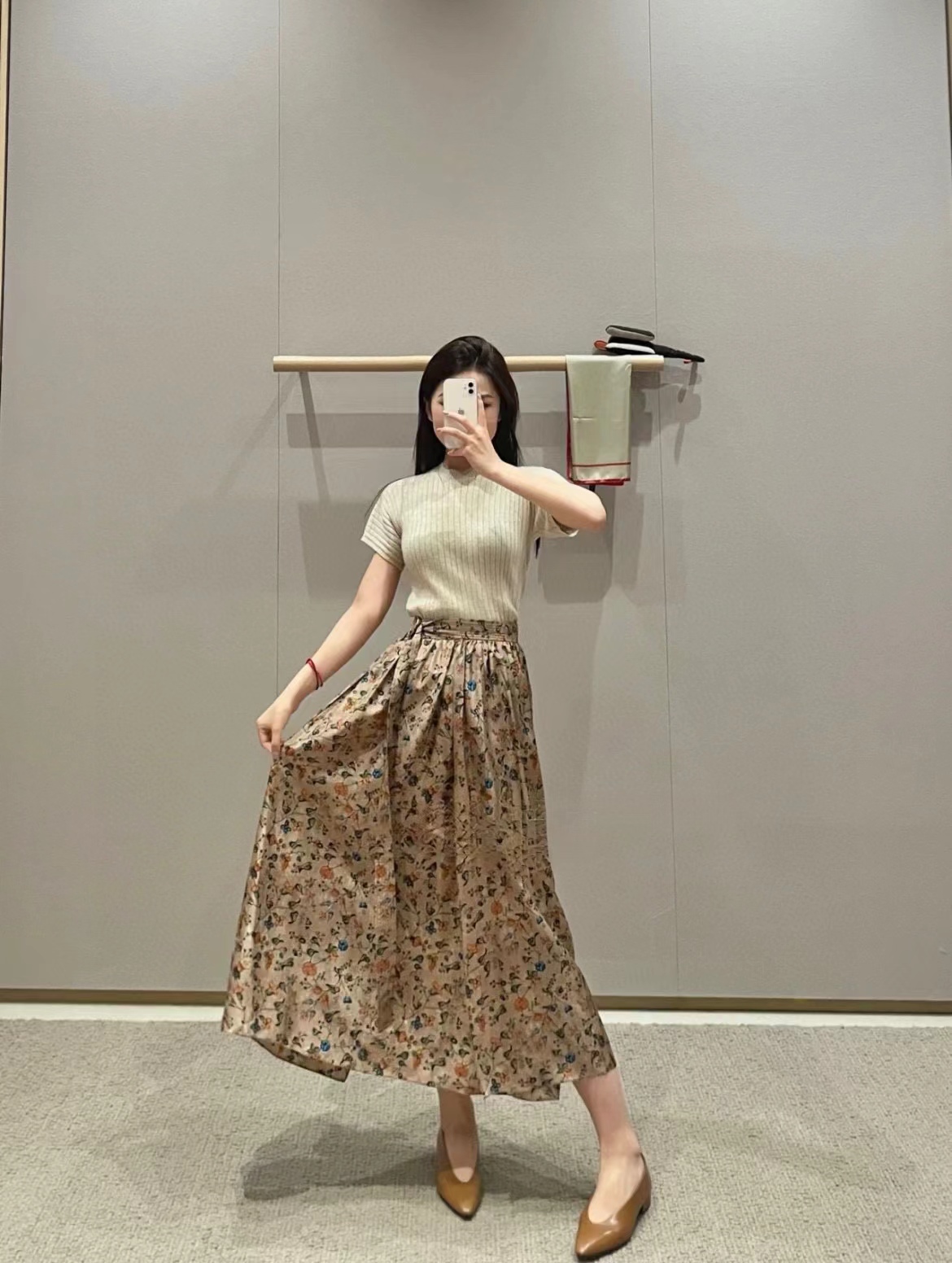 【à perles】复古花卉印花纯真丝衬衣和伞裙 飘逸大裙摆【7个工作日】