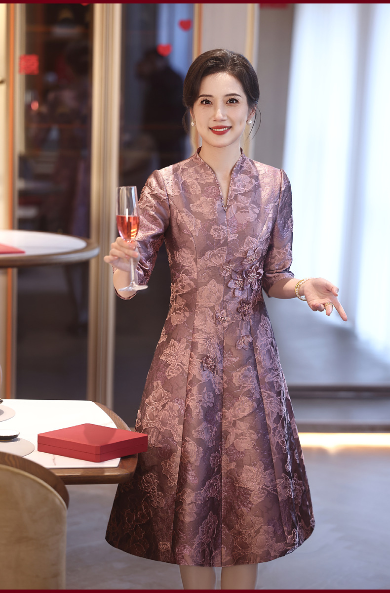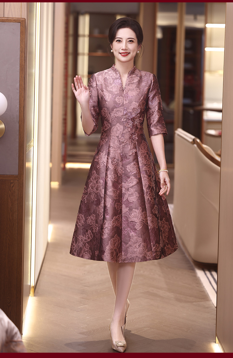 DE5BL939-1 高端优雅气质妈妈婚宴礼服2025年新款喜婆婆参加婚礼装轻奢连衣裙