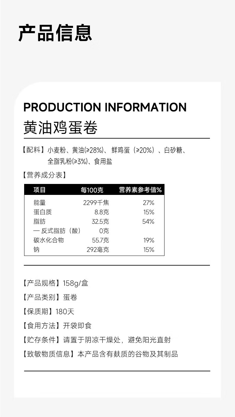 阿提阿提·黄油鸡蛋卷158g*2 黄油的醇 + 鸡蛋的鲜 每根都超入味