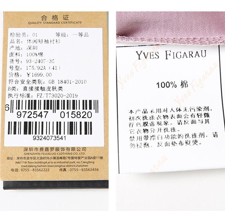 YvesFigarau伊夫·费嘉罗100%棉休闲短袖衬衫932407