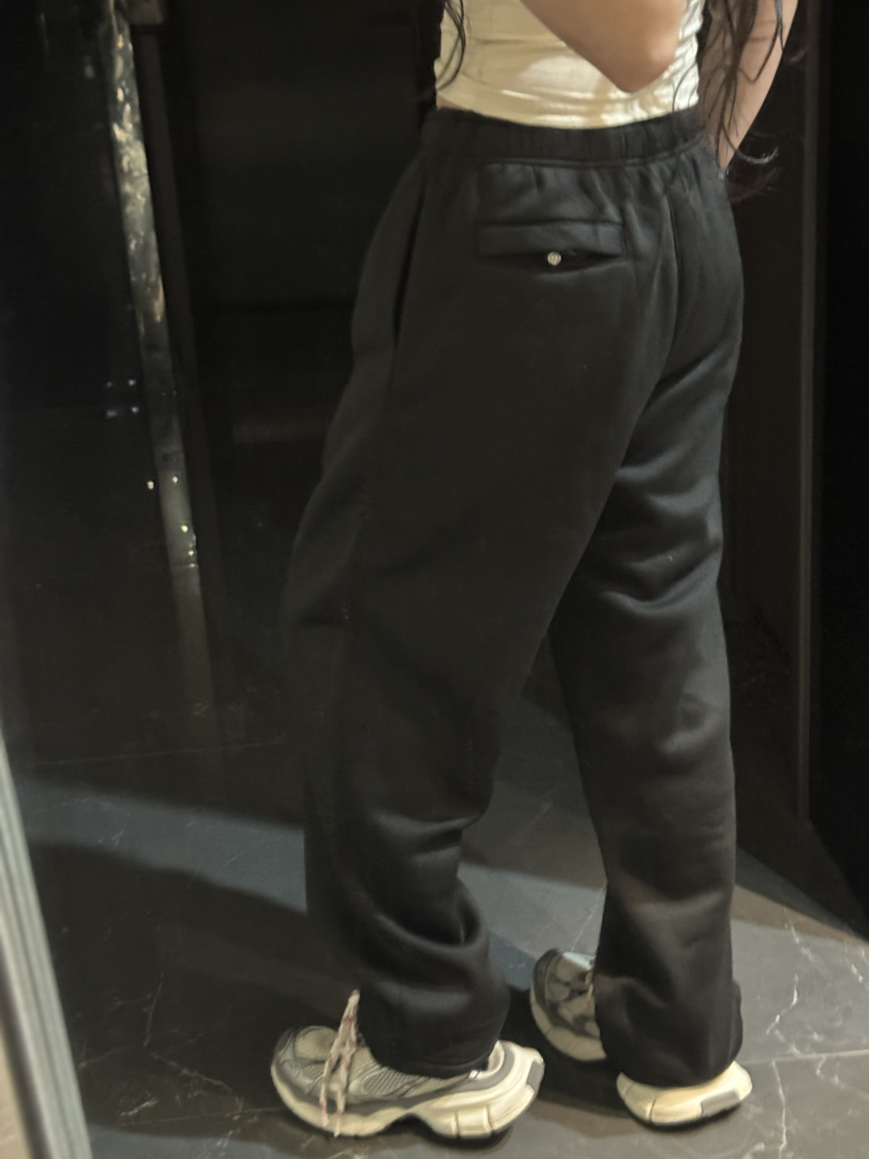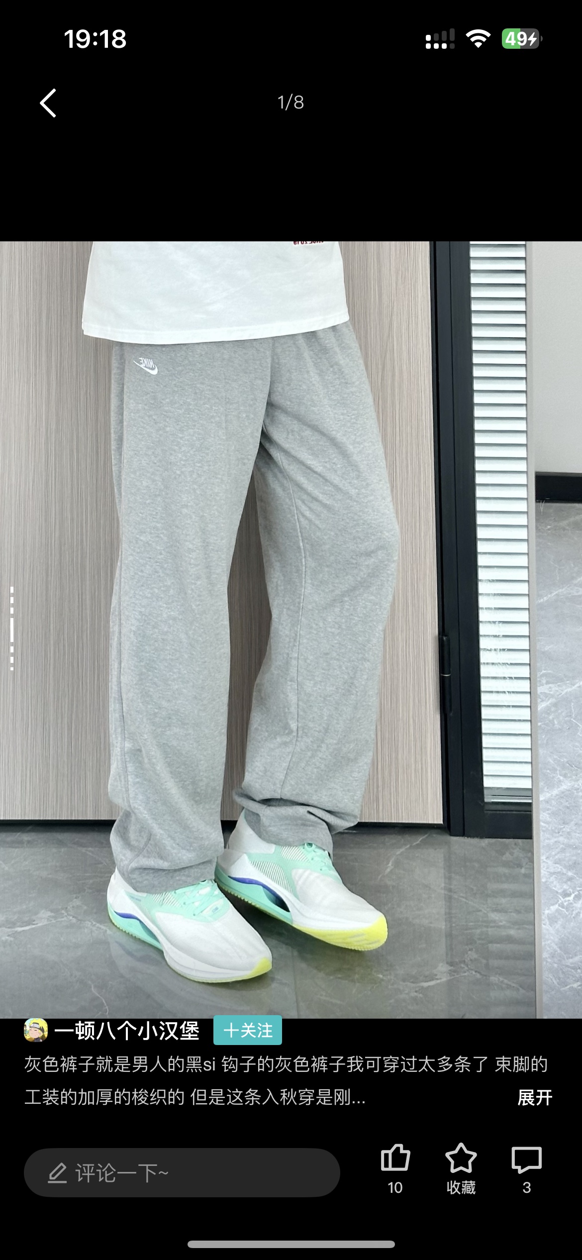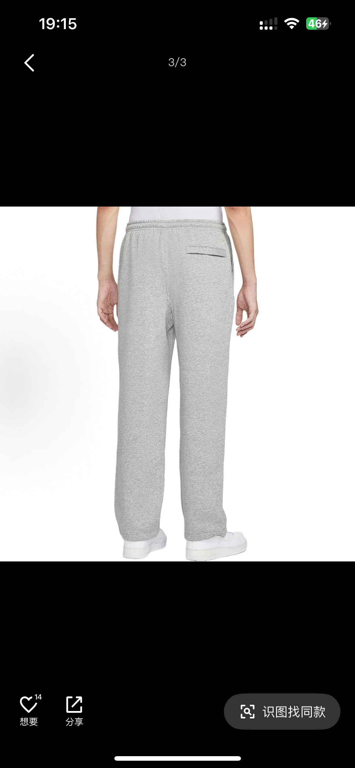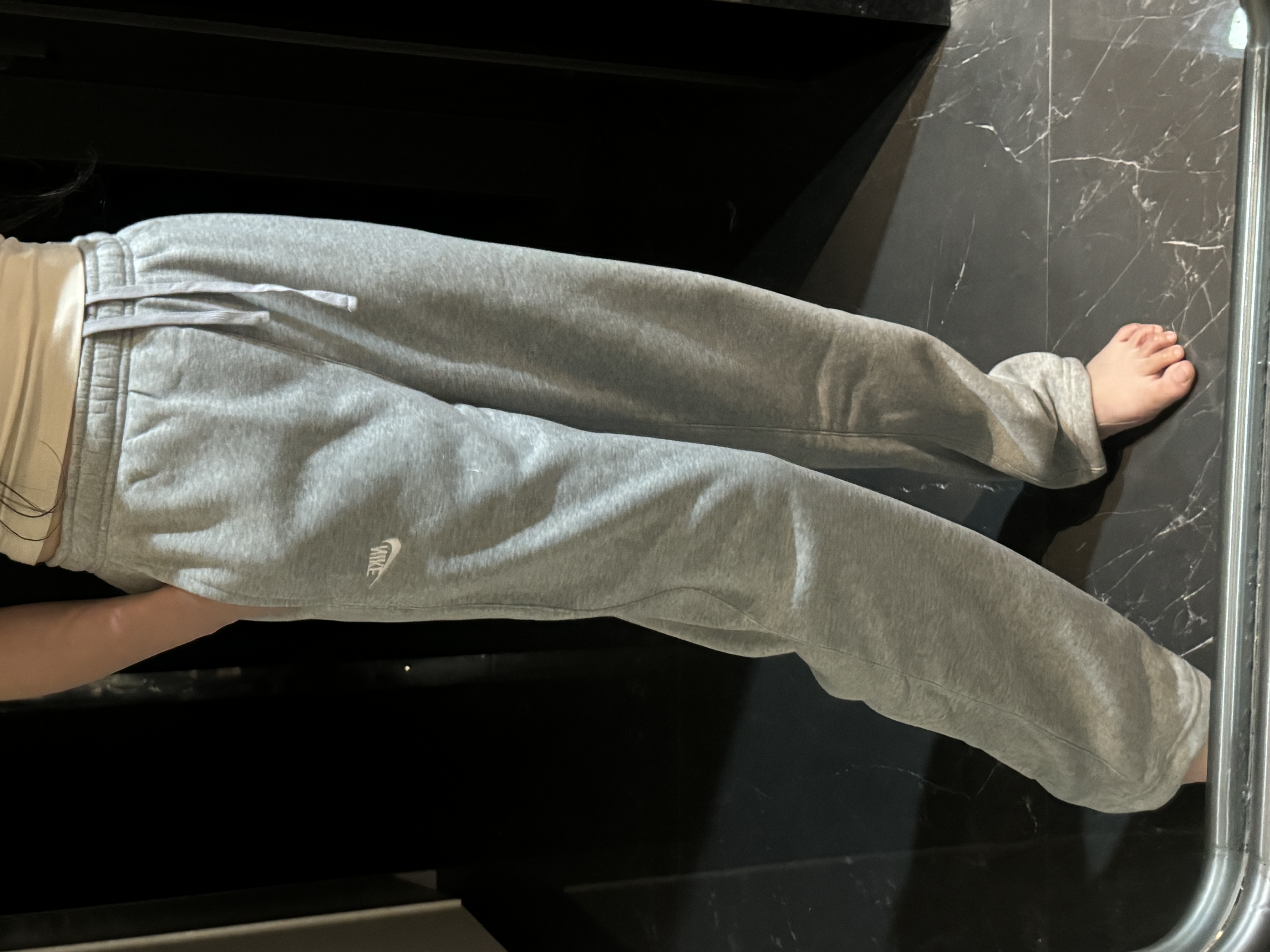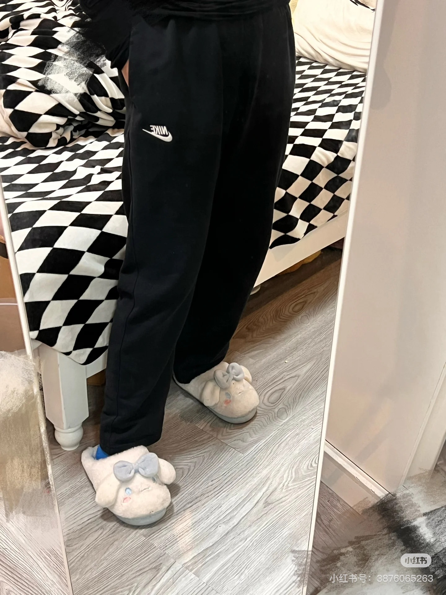N&ike Club 系带百搭直筒休闲阔腿裤 男女同款 黑灰色👉采用100纯棉面料,内里加一层薄绒 看起来舒适且有一定厚度 裤型为直筒宽松设计,适合日常休闲穿着,•裤腰是松紧带+抽绳设计😎,方便调节,腿外侧有白色的经典耐克小勾(Swoosh)刺绣Logo裤脚是直筒剪裁带猪鼻扣,没有明显的收脚设计。