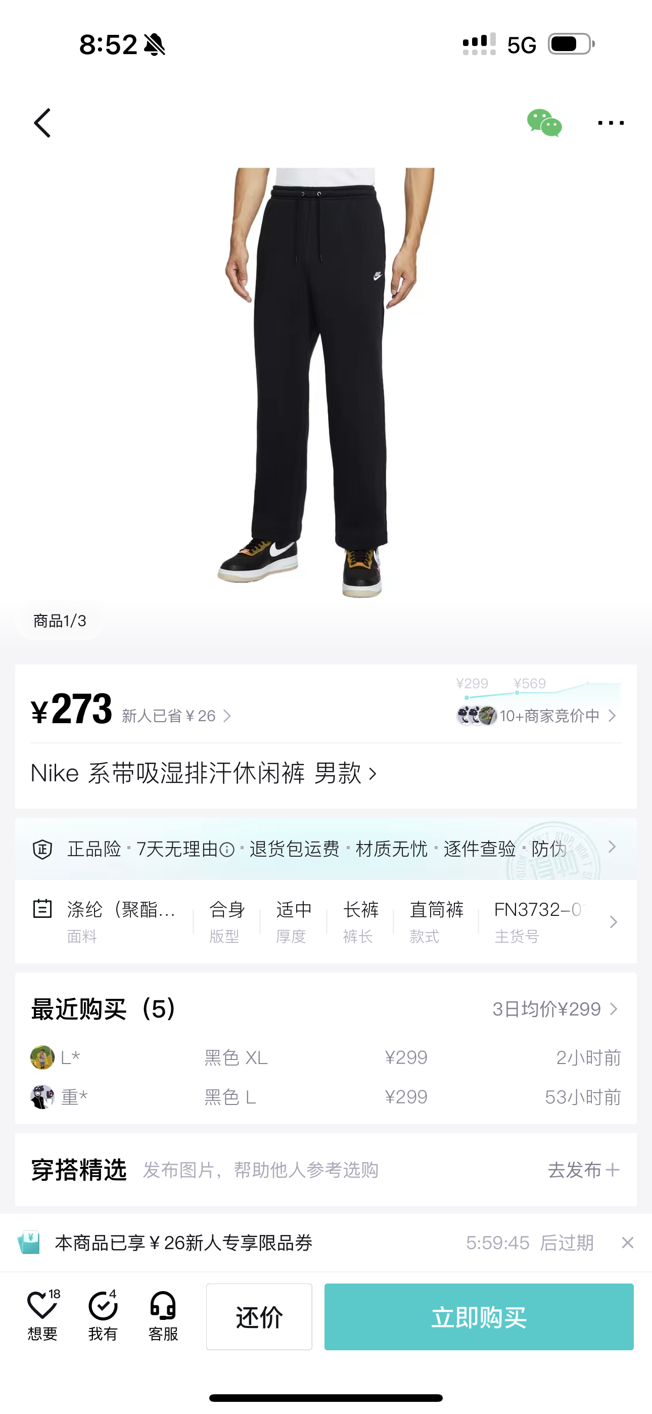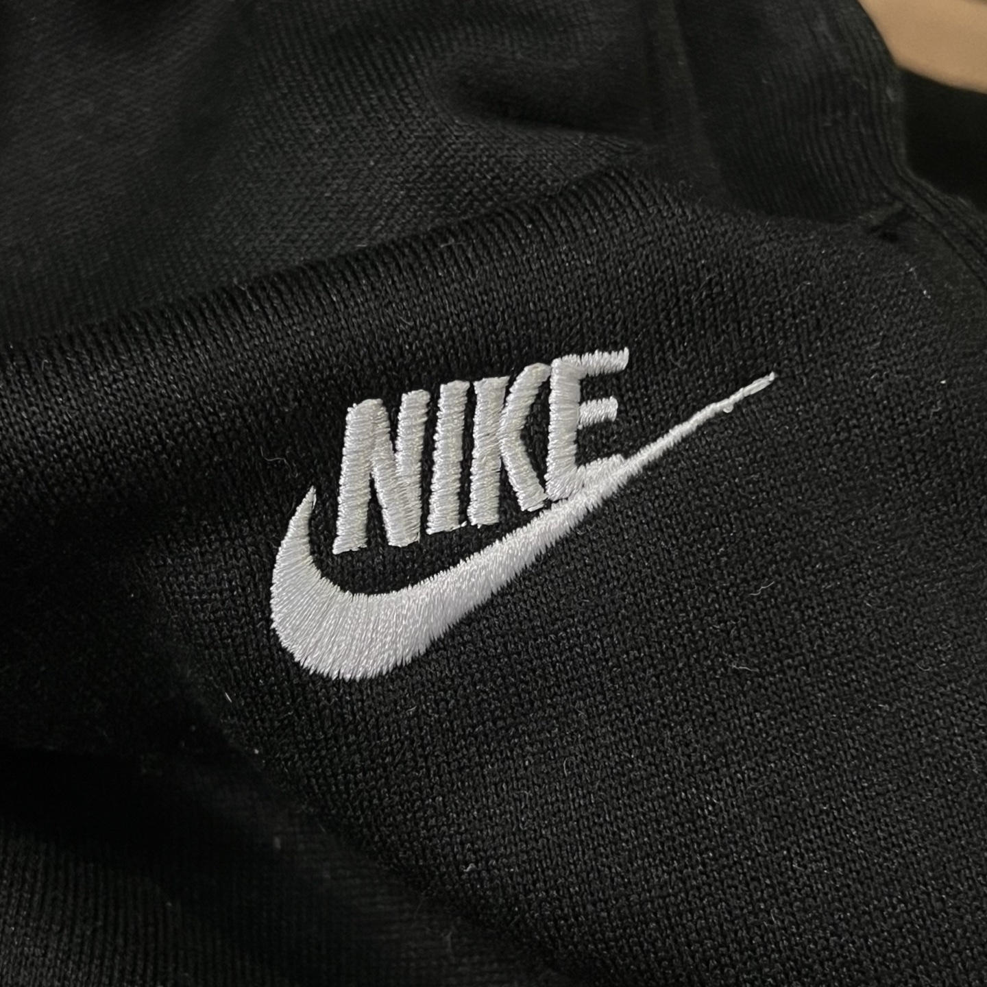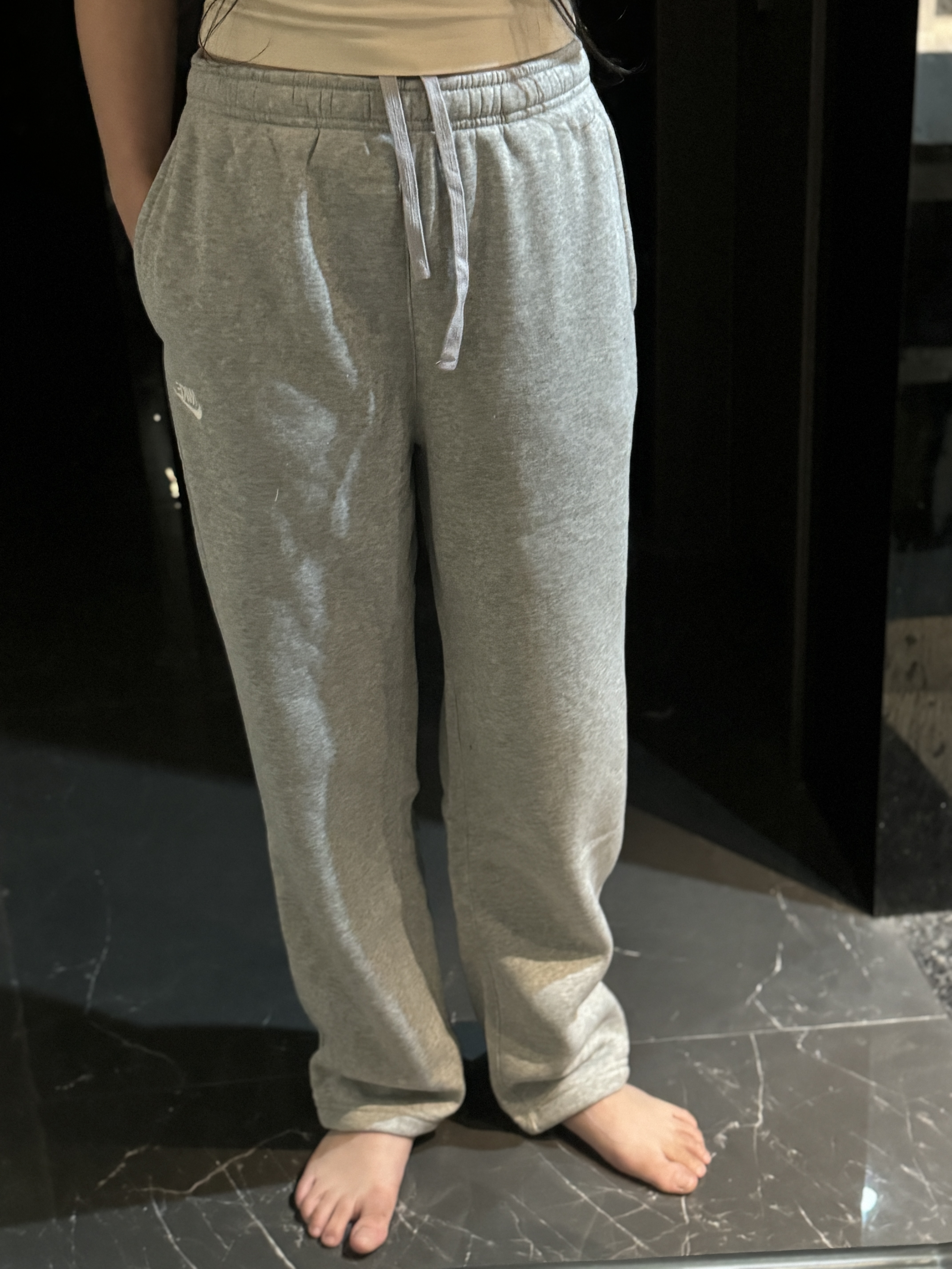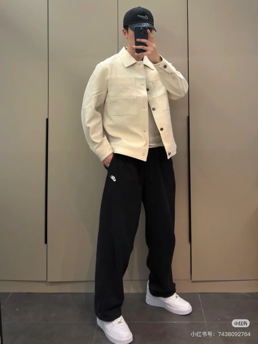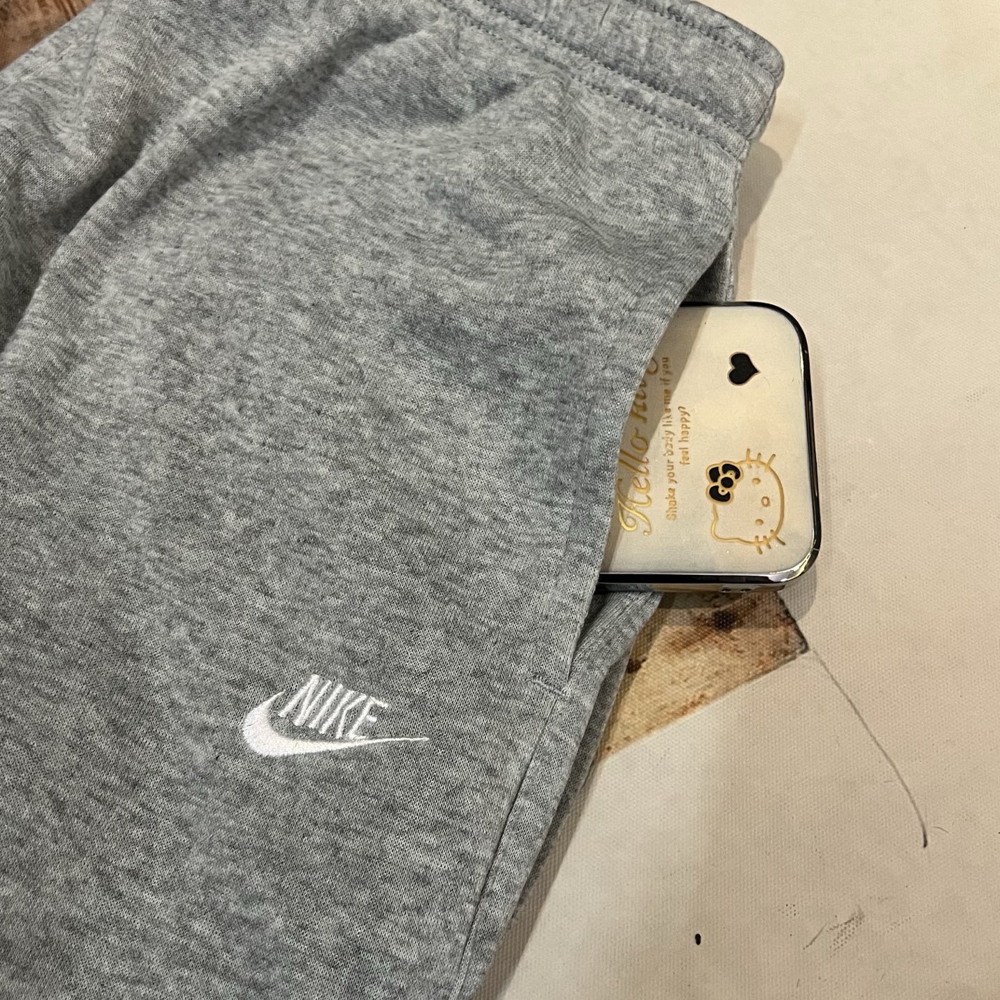 N&ike Club 系带百搭直筒休闲阔腿裤 男女同款 黑灰色👉采用100纯棉面料,内里加一层薄绒 看起来舒适且有一定厚度 裤型为直筒宽松设计,适合日常休闲穿着,•裤腰是松紧带+抽绳设计😎,方便调节,腿外侧有白色的经典耐克小勾(Swoosh)刺绣Logo裤脚是直筒剪裁带猪鼻扣,没有明显的收脚设计。