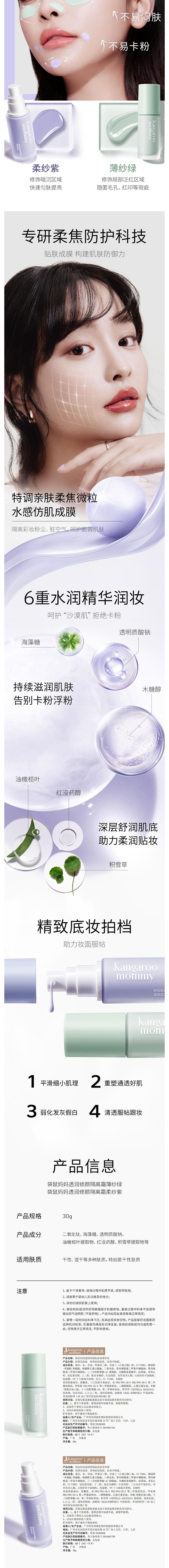 袋鼠妈妈 透润修颜隔离霜柔纱紫-30g A100181502