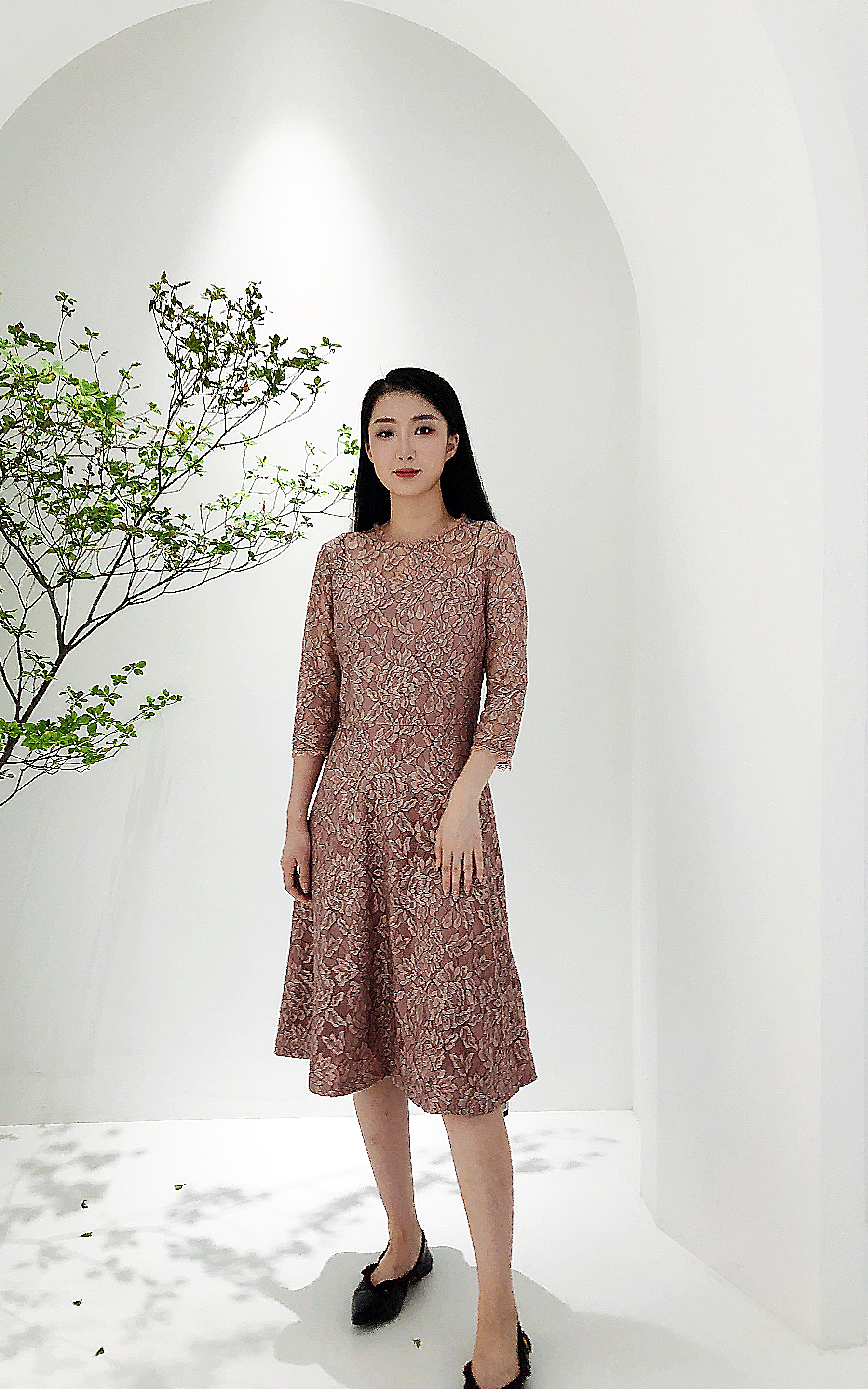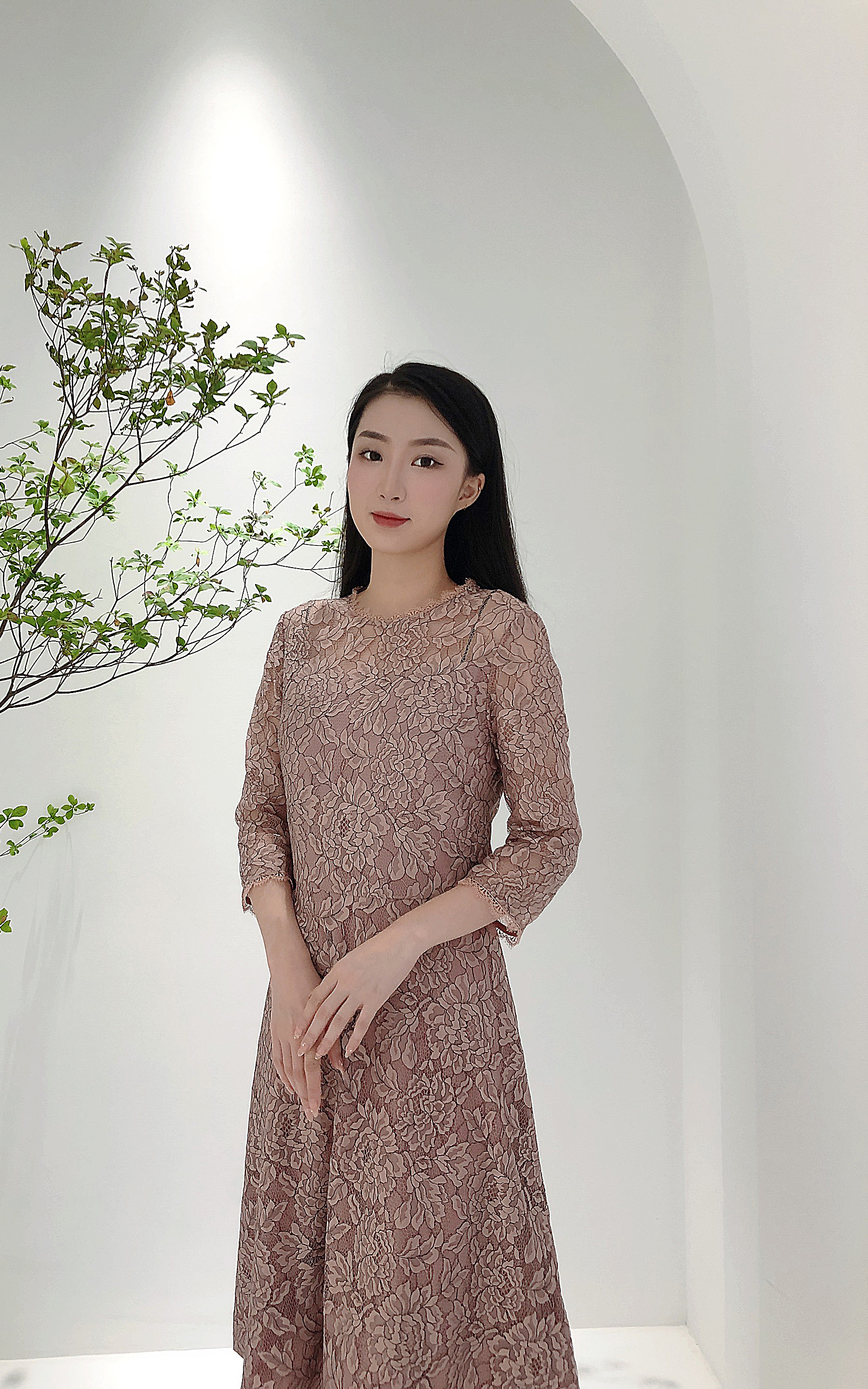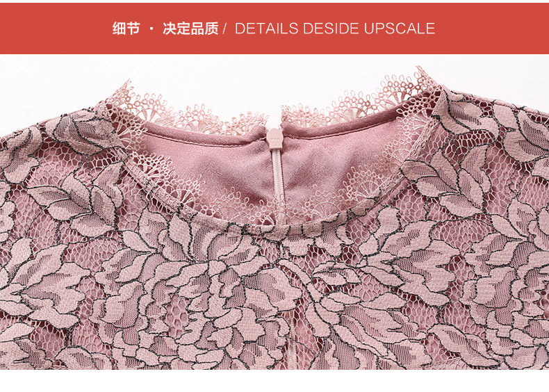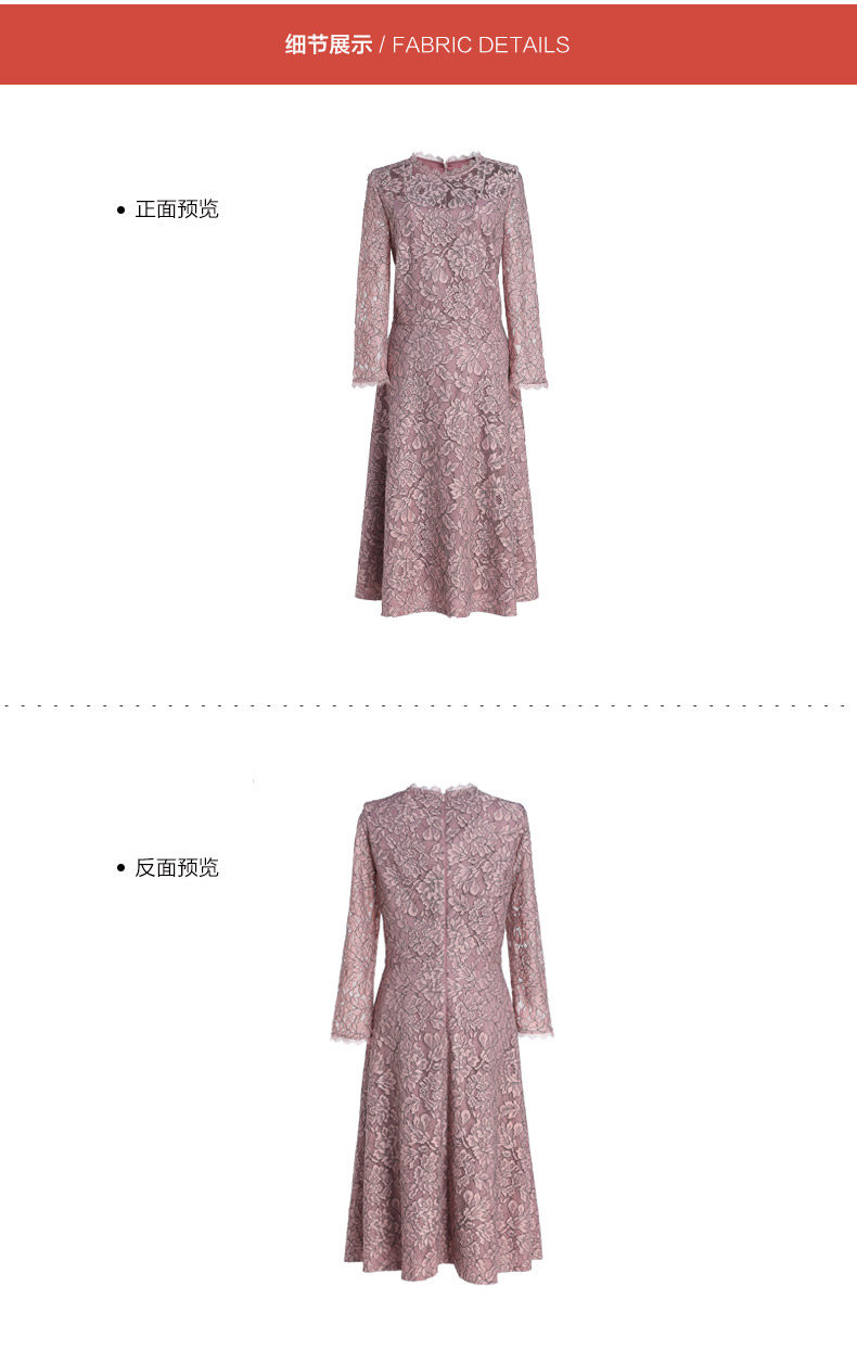 乔万尼春季蕾丝高腰修身气质名媛淑女长袖连衣裙EB3E228