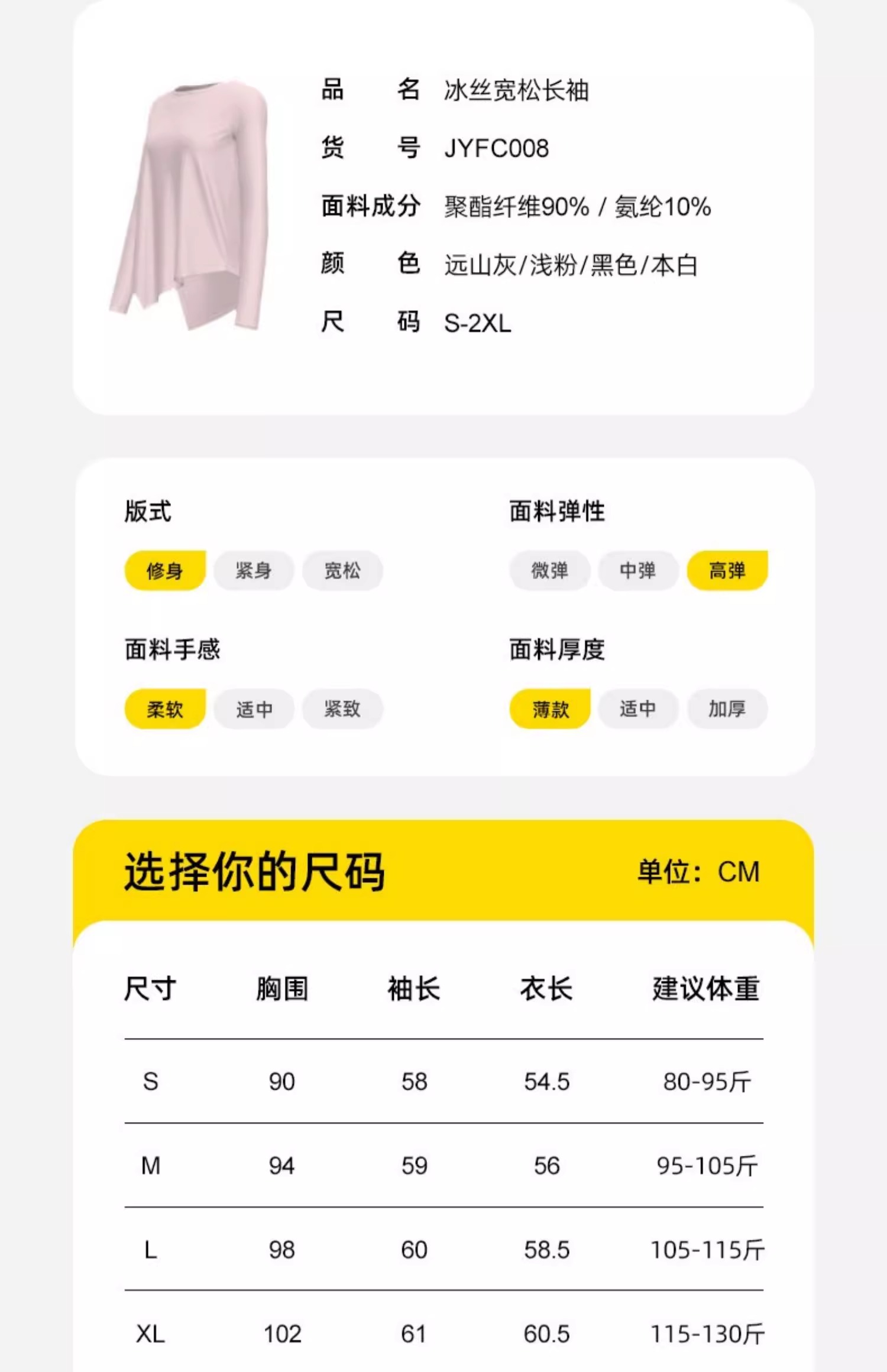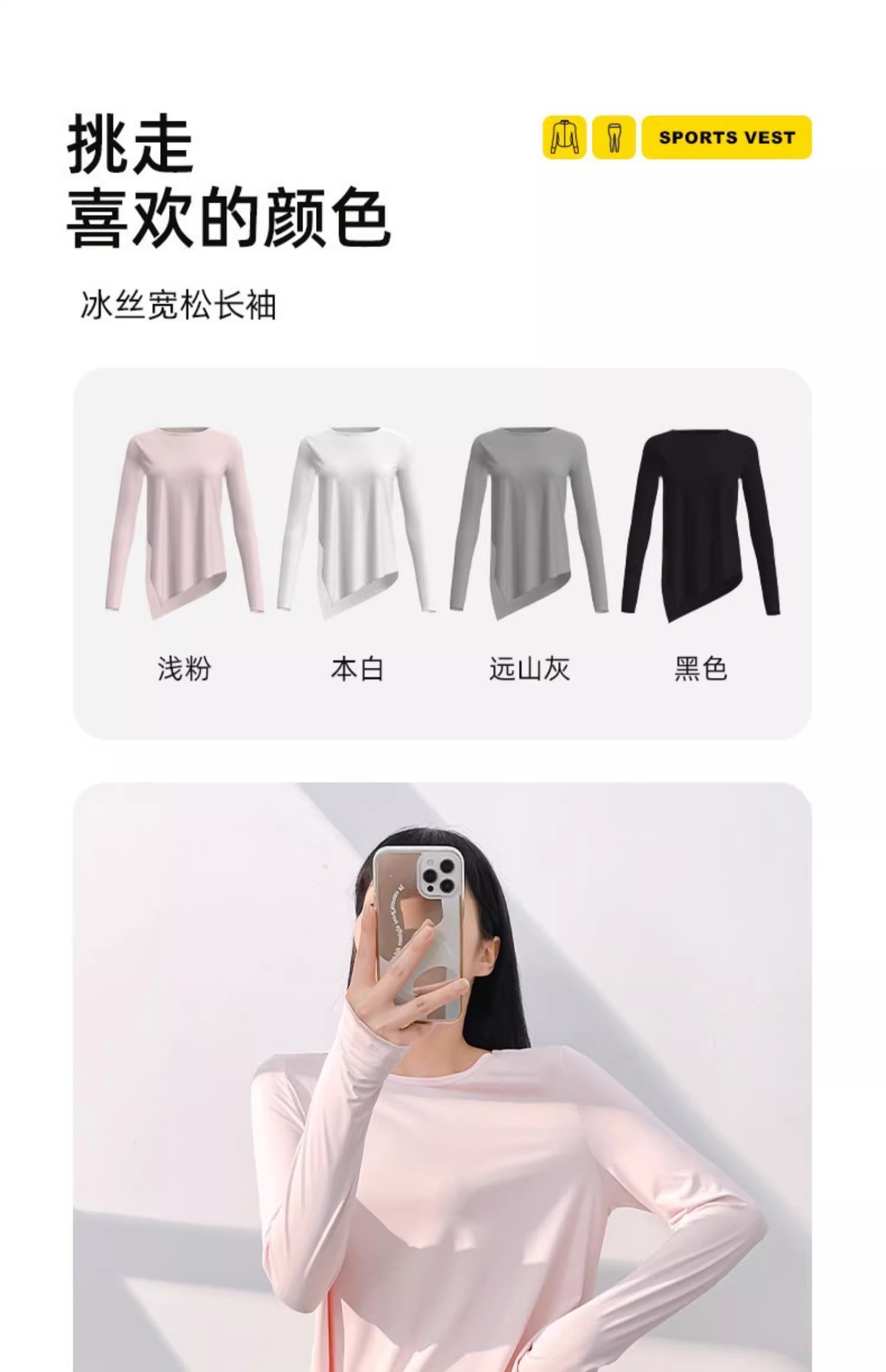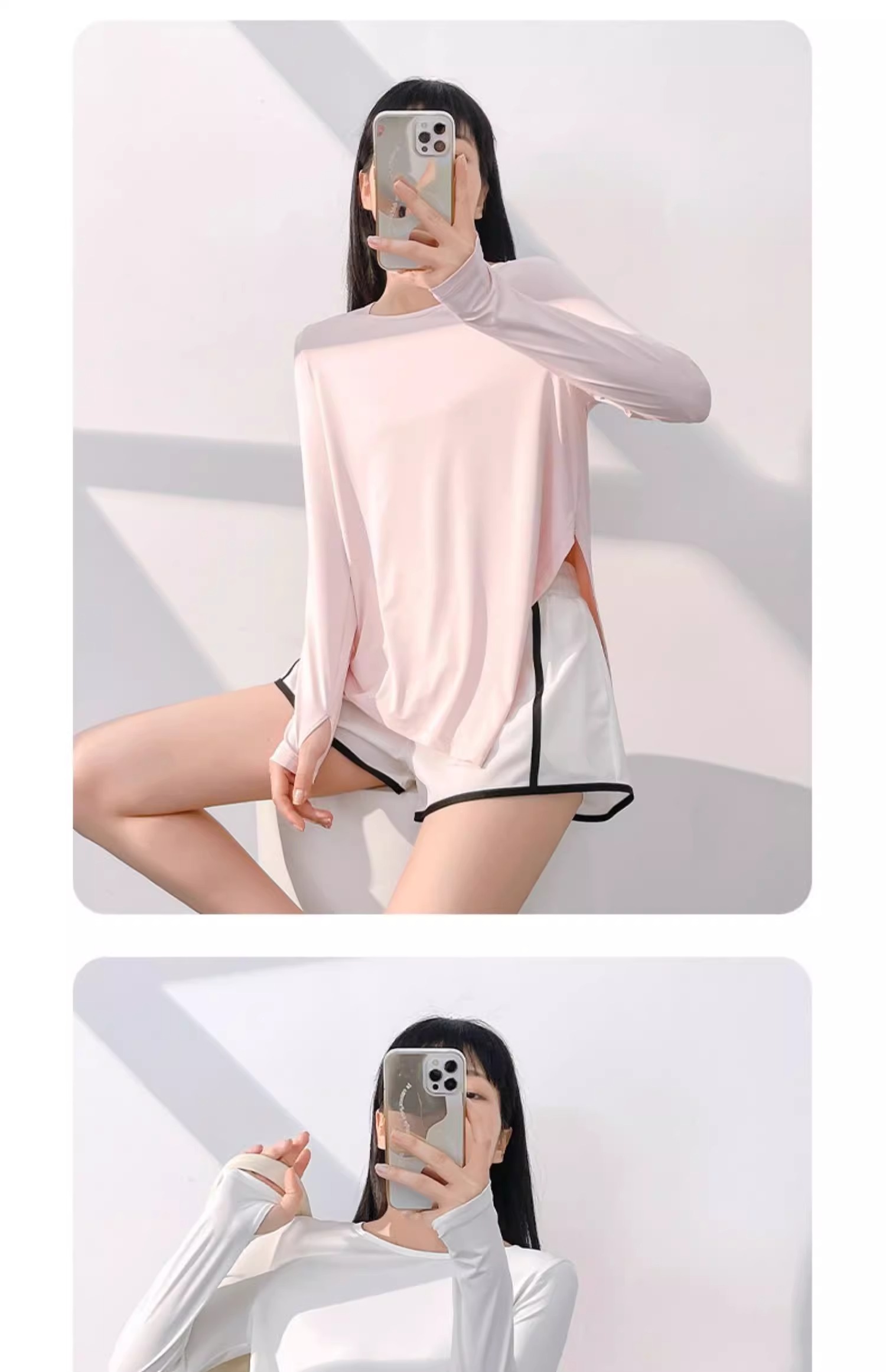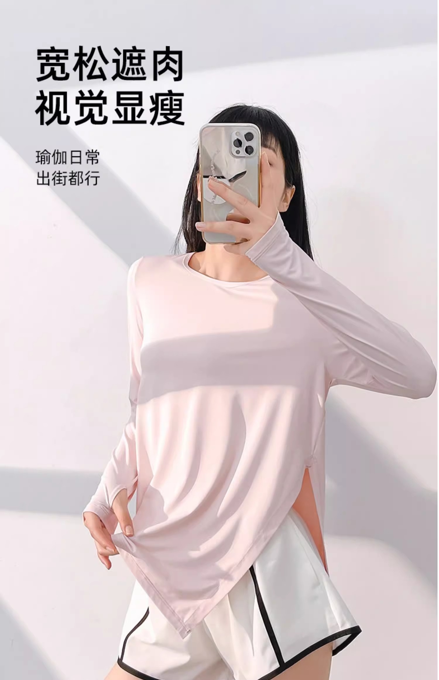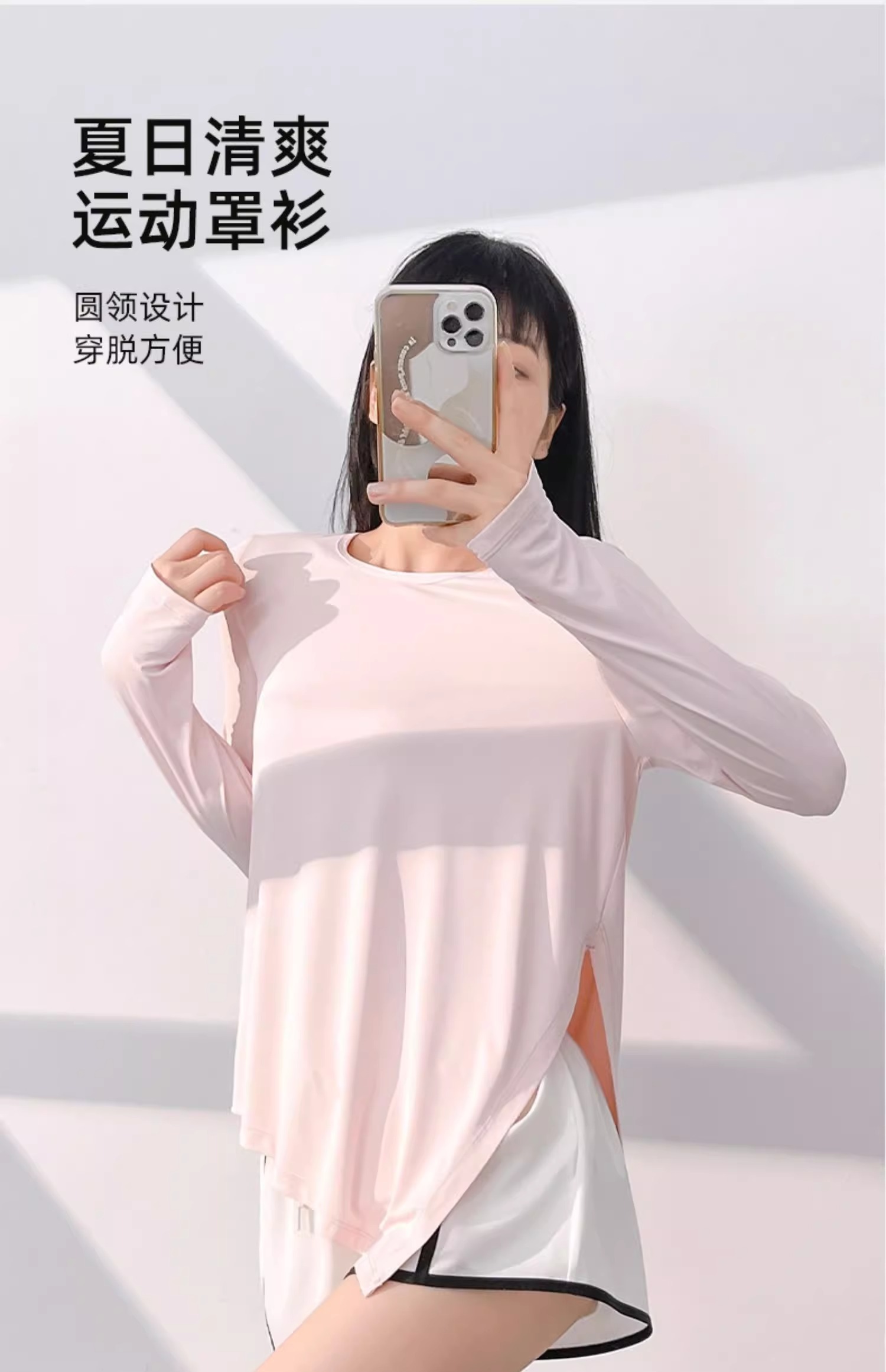 跃牌【瑜堂系列】新款冰丝长袖瑜伽服上衣凉爽透气宽松开叉瑜伽罩衫JYFC008