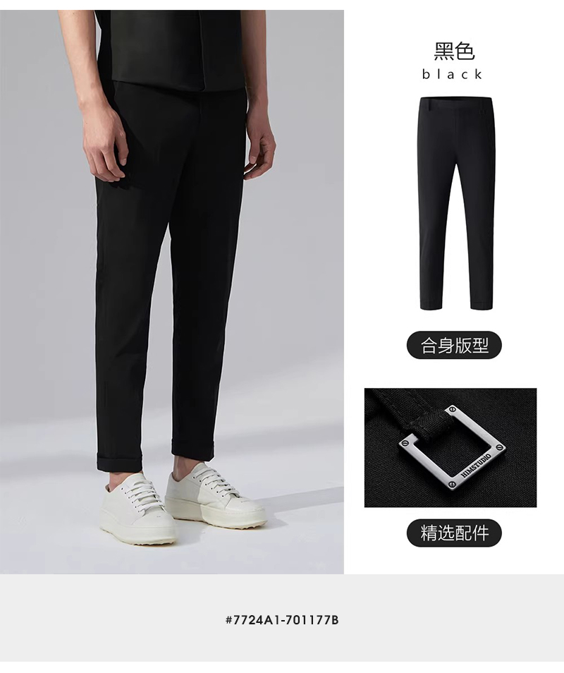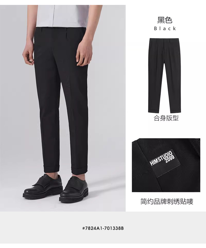 HIM漢崇 舒适束脚裤男后袋压花设计抽绳松紧腰运动休闲裤2025秋季