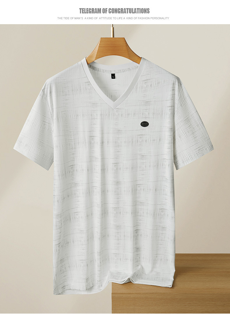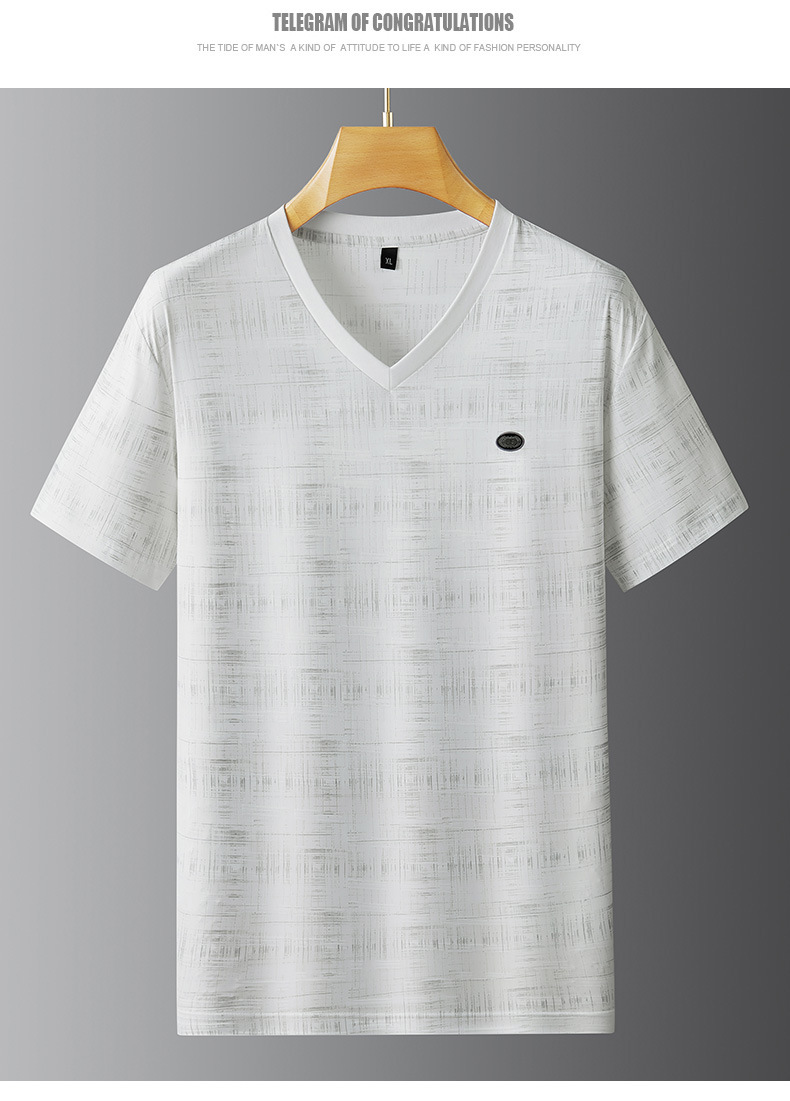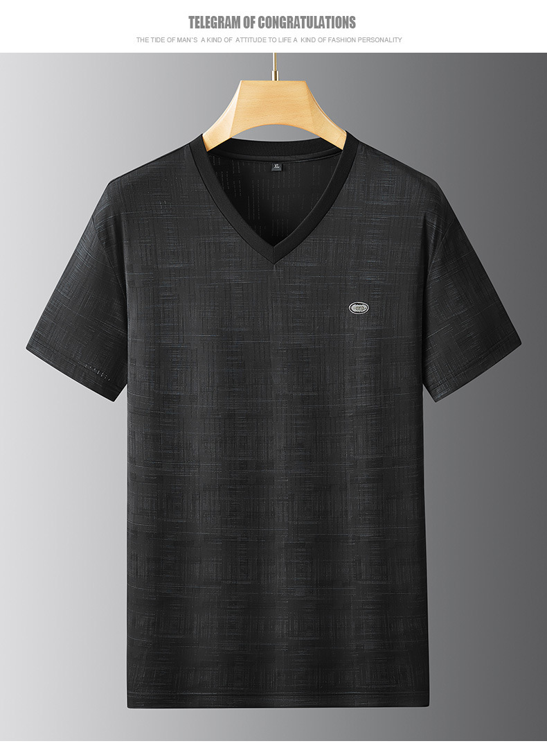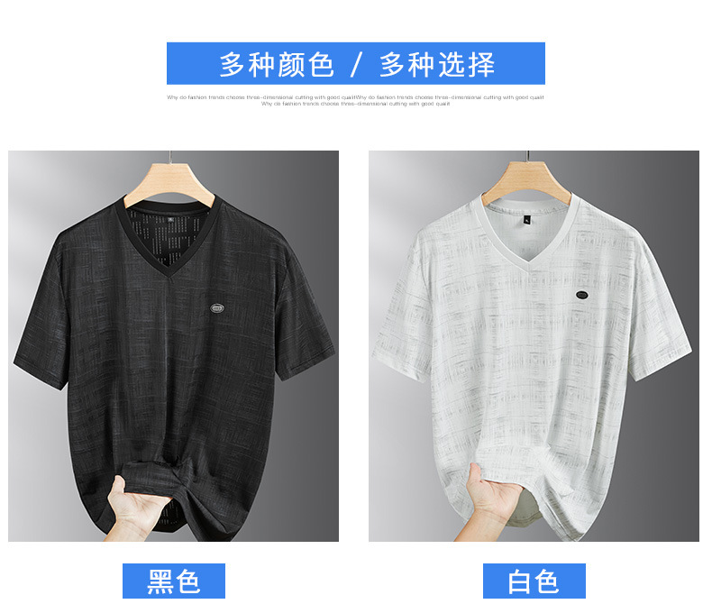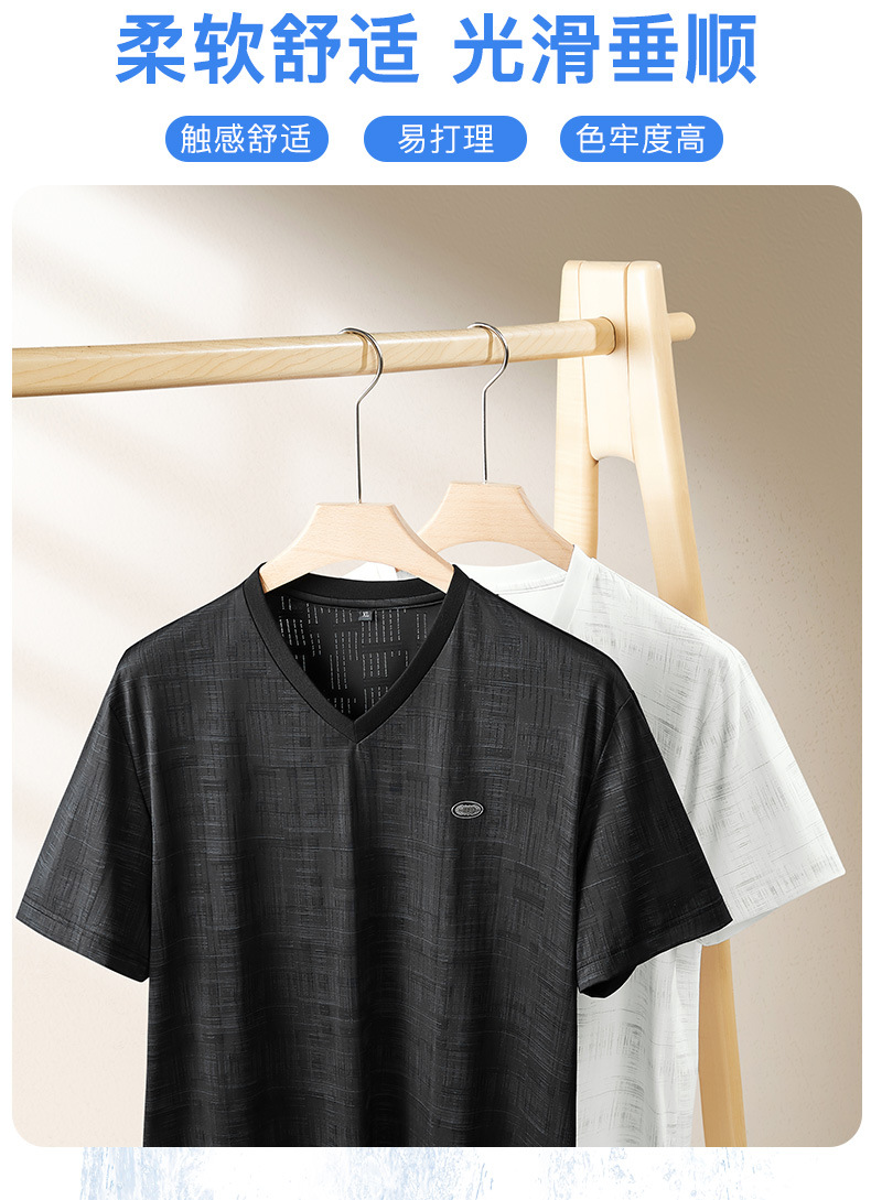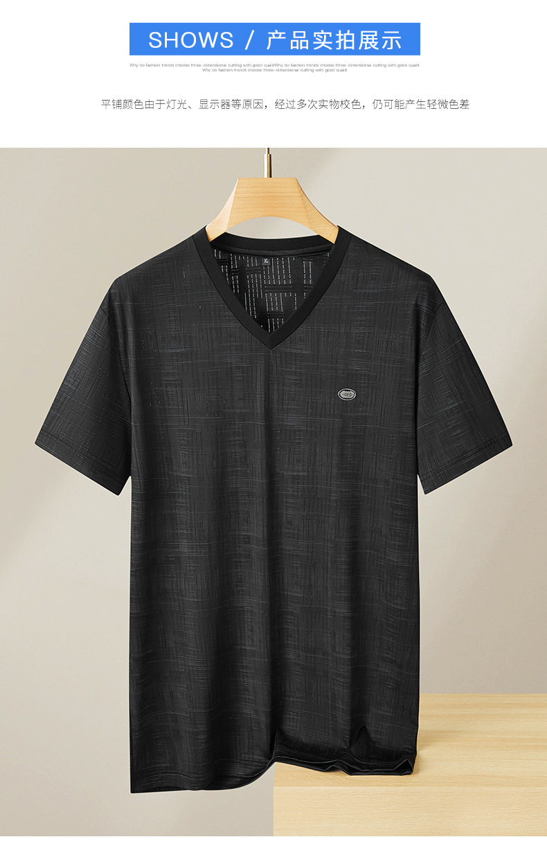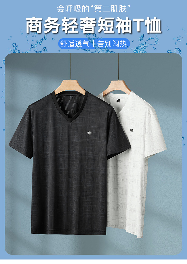【冰丝】【DPF】大依优型大码V领短袖T恤加肥加大码时尚冰丝速干半袖上衣男士夏季新款