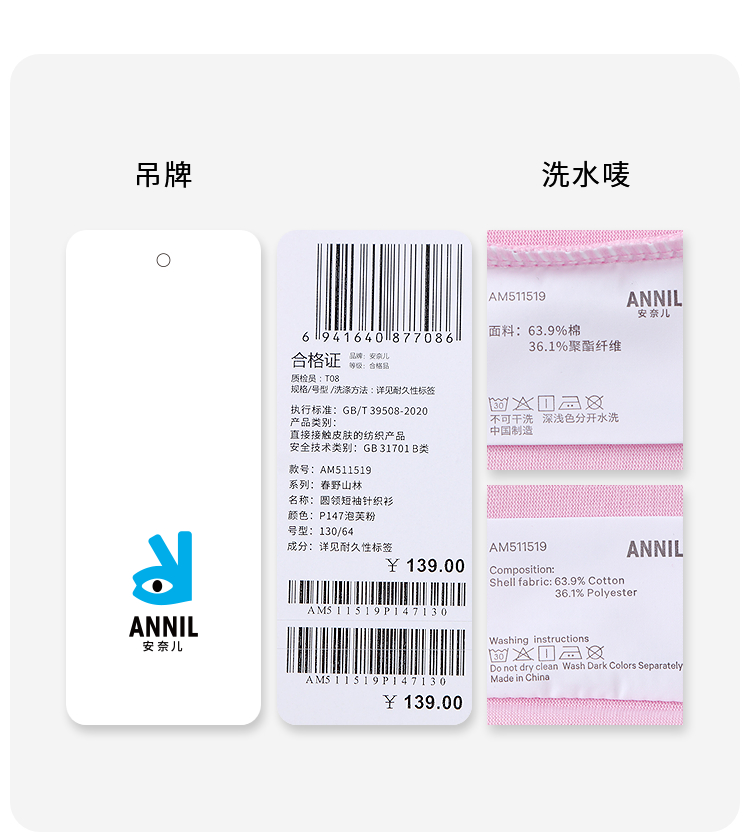 【商场同款在售】男童女童圆领短袖SORONA针织衫夏季新款安奈儿童装实体店同款AM511519