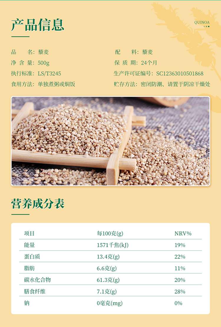 青海高原藜麦米 孕妇宝宝辅食粥 黄白藜麦五谷杂粮粗粮500g克