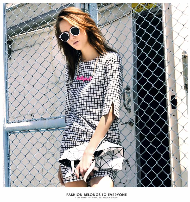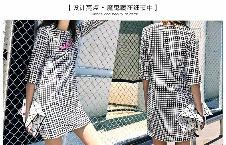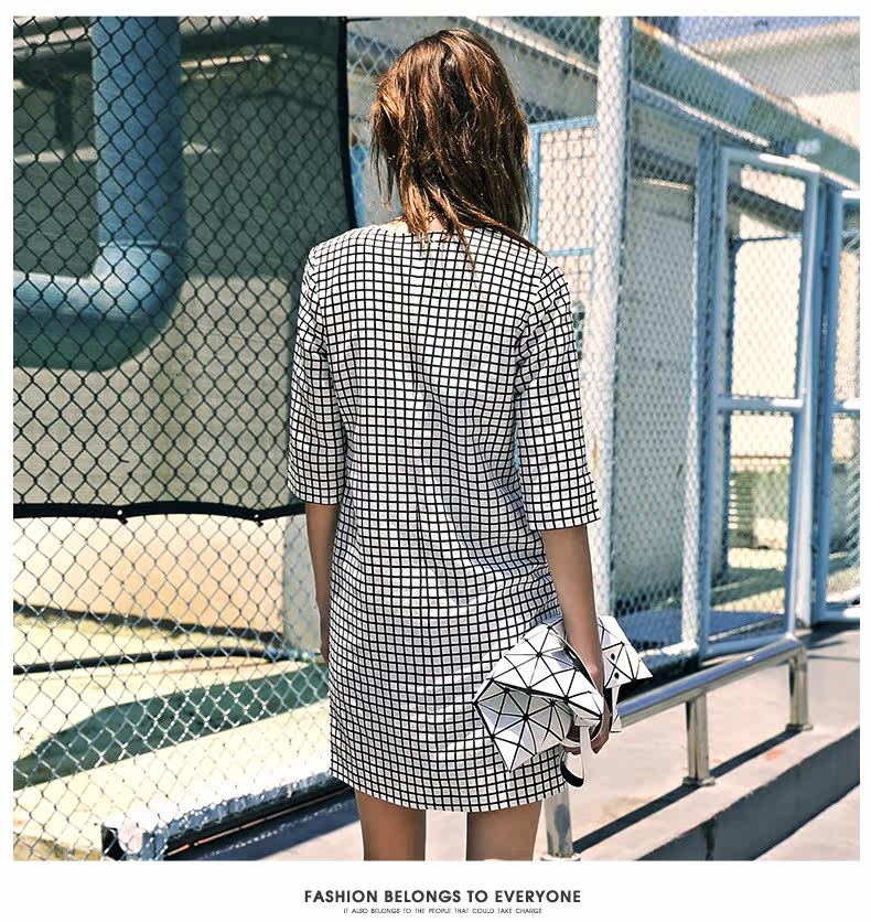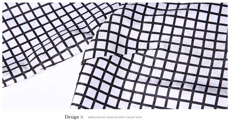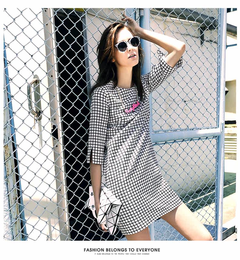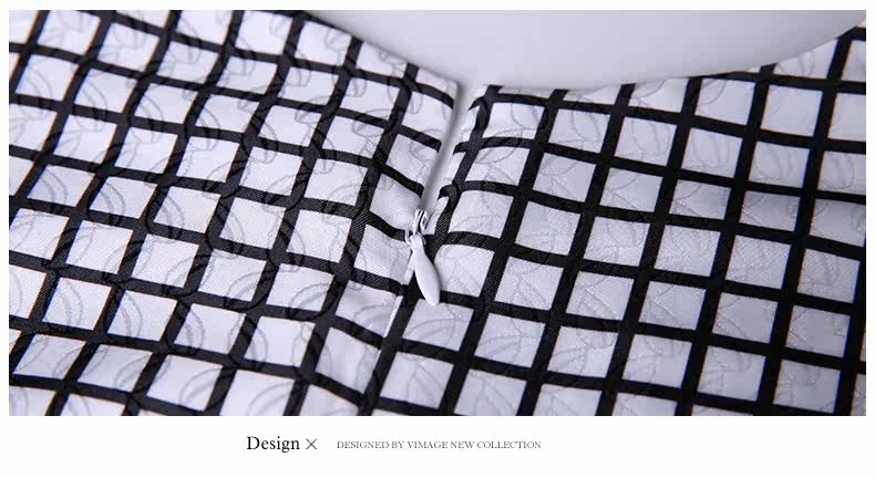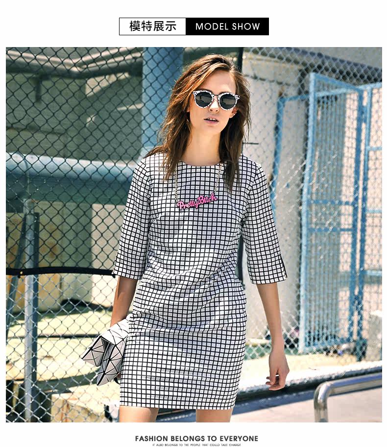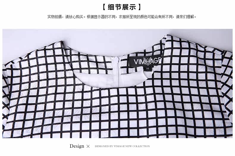 VIMAGE纬漫纪春夏女装OL通勤宽松圆领A字裙优雅气质中袖格子连衣裙 短裙V307130