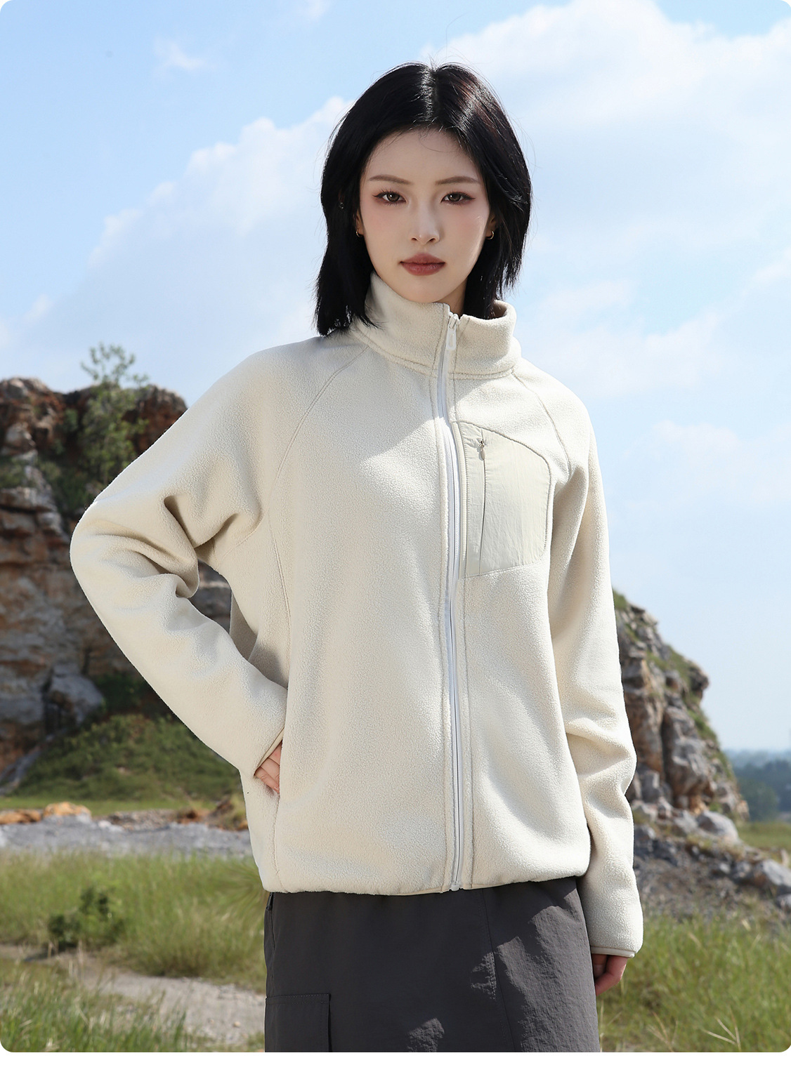 百媚生 立领摇粒绒百搭卫衣外套女抓绒上衣DM25661