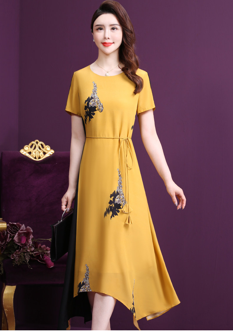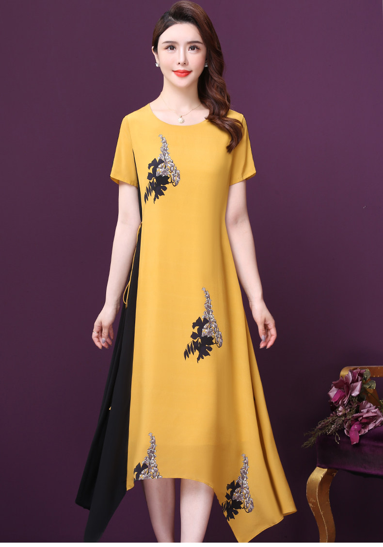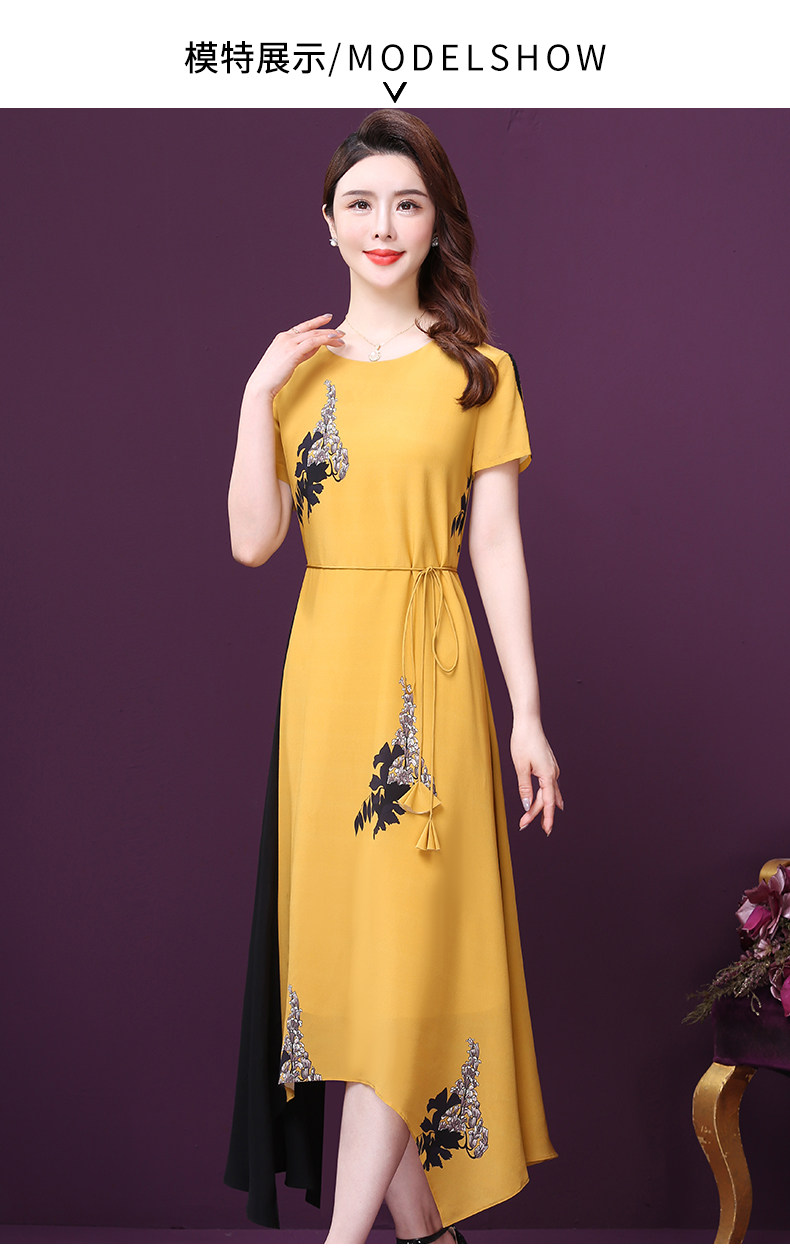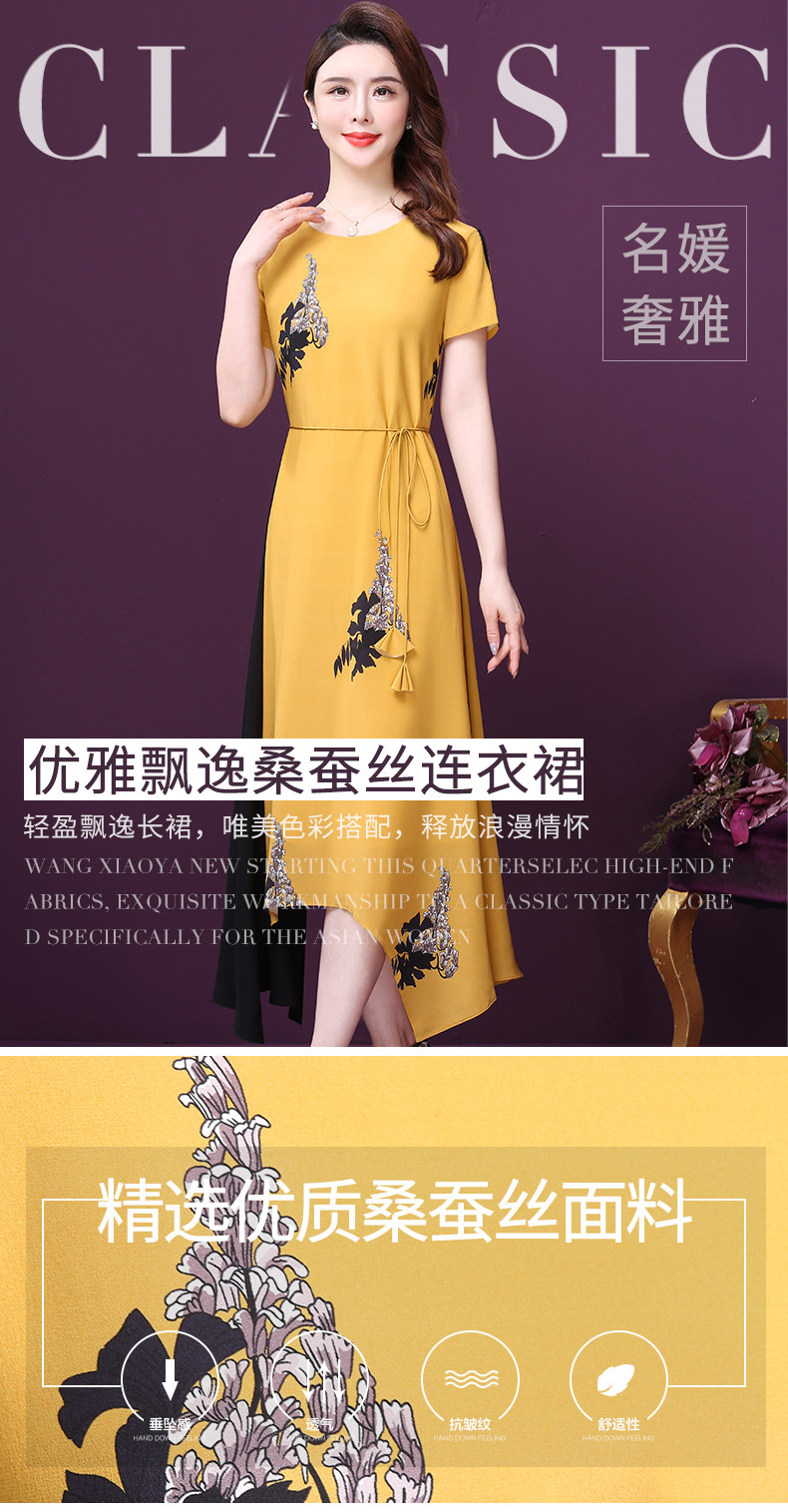 WXY-W-YE-26153W双绉真丝裙子新款圆领气质淑女大码显瘦蚕丝裙
