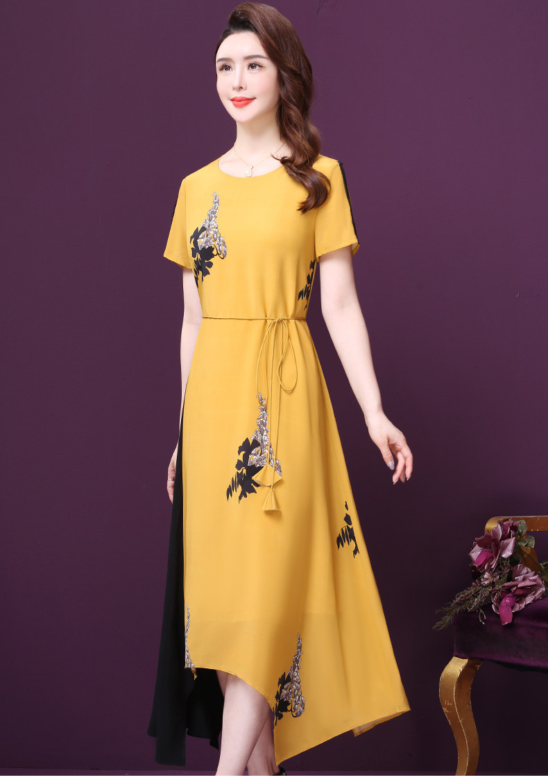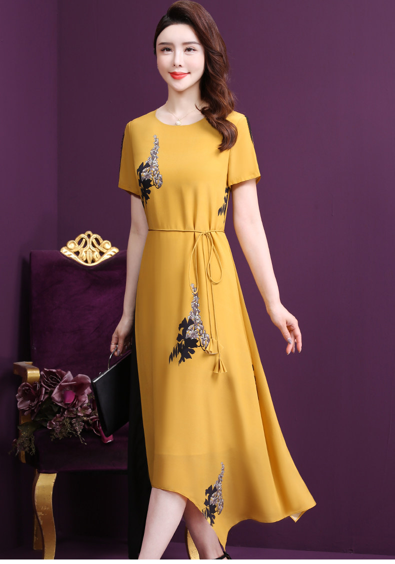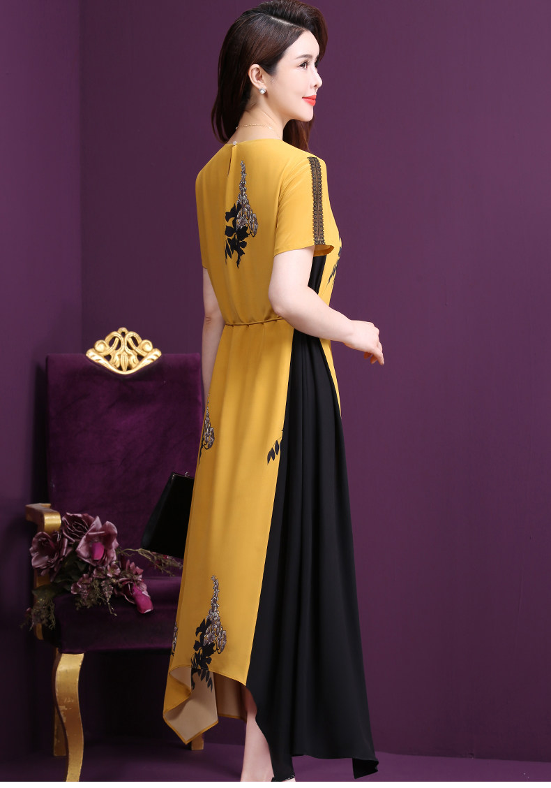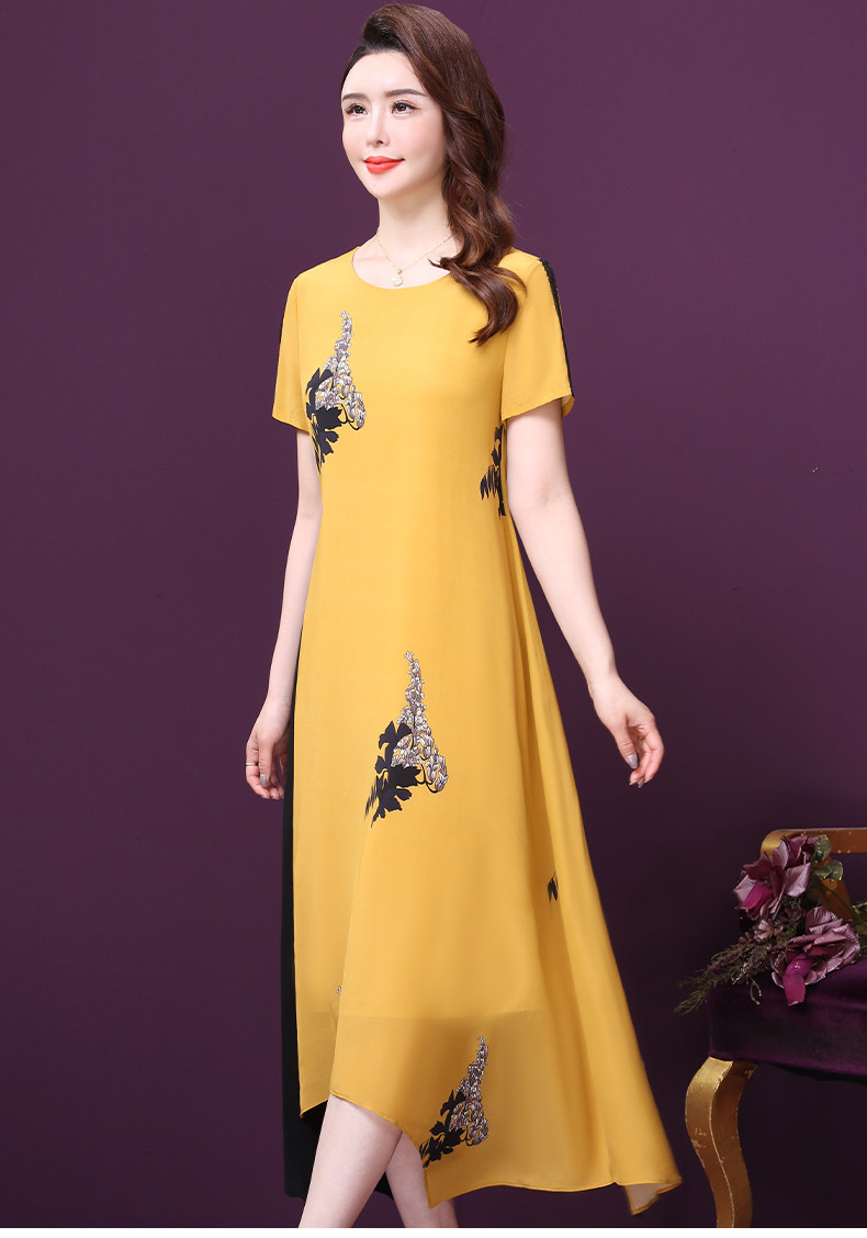 WXY-W-YE-26153W双绉真丝裙子新款圆领气质淑女大码显瘦蚕丝裙