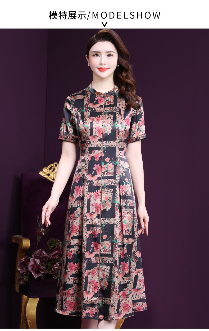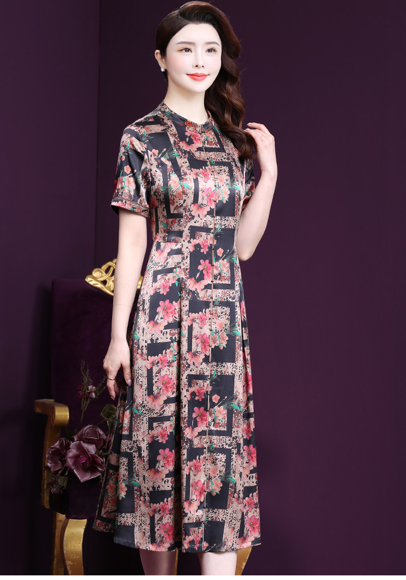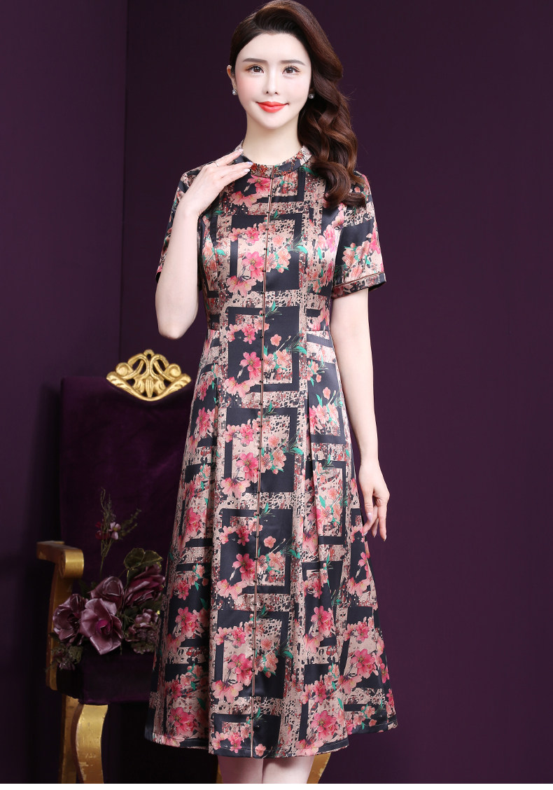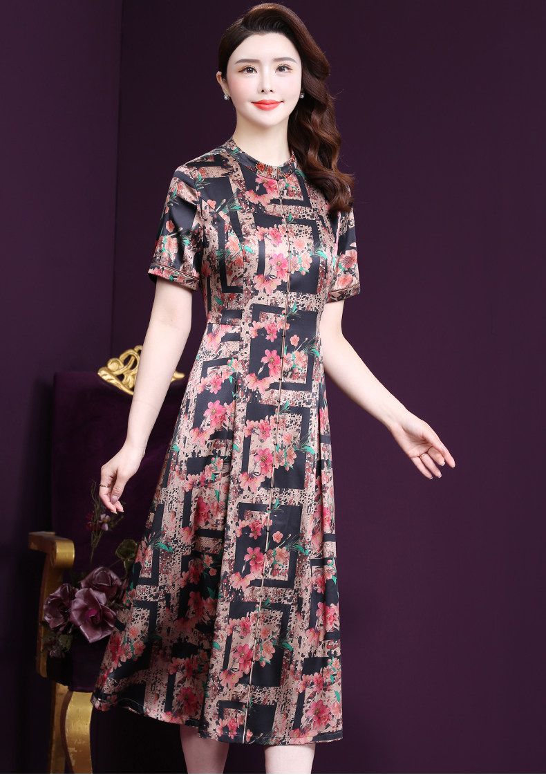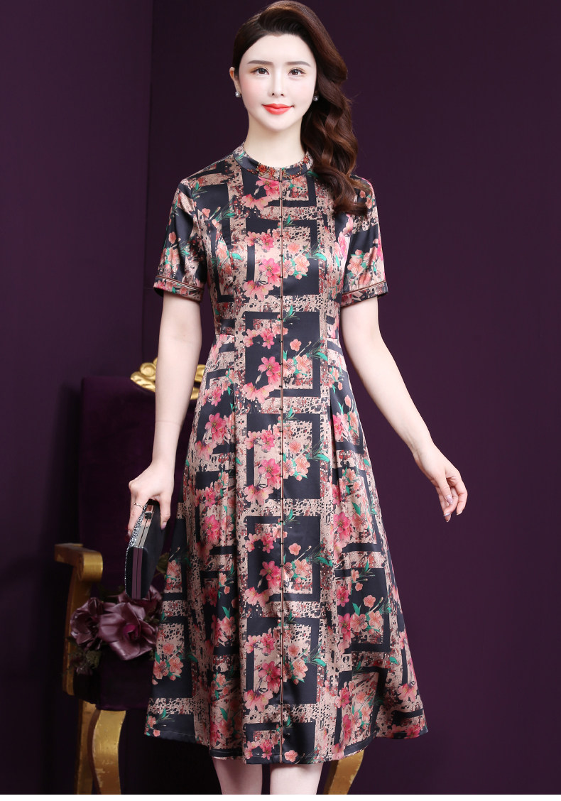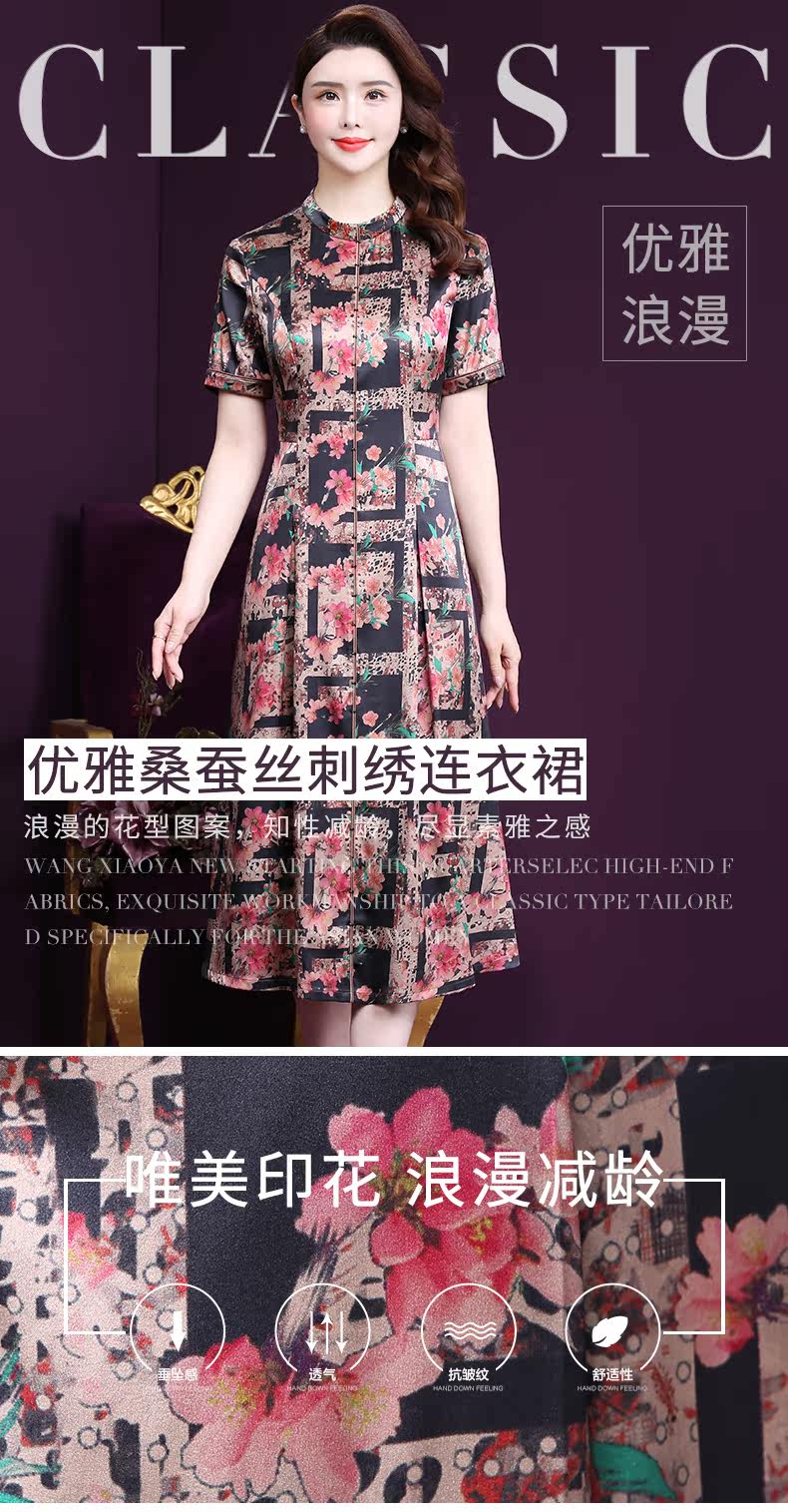 WXY-2807夏装新款垂感高腰气质减龄印花真丝连衣裙