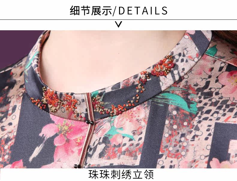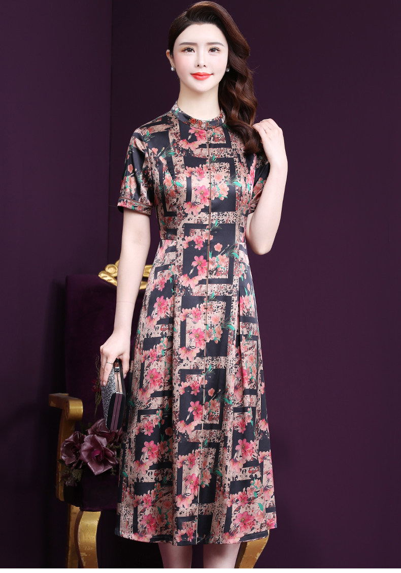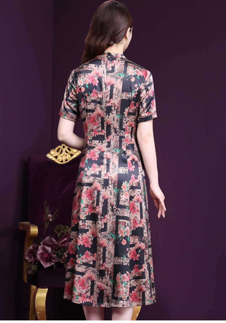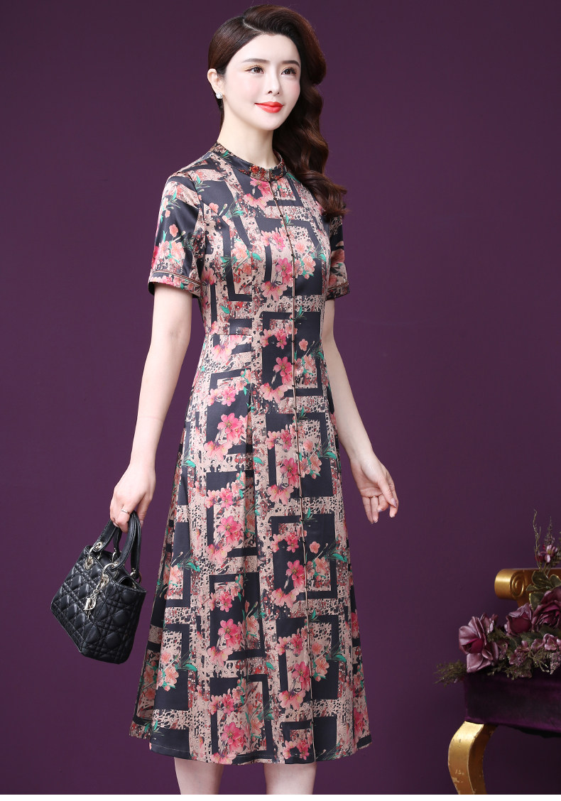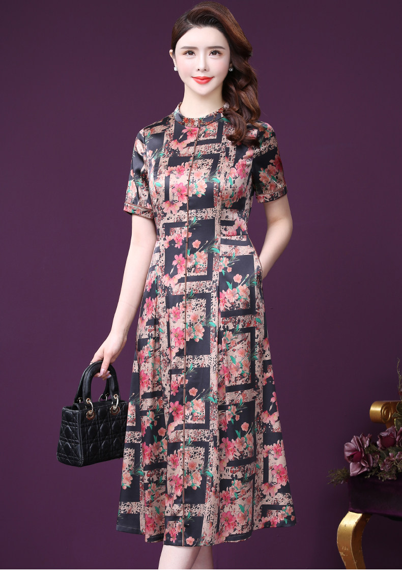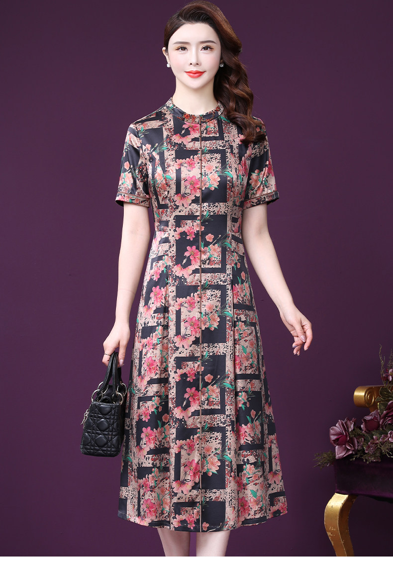 WXY-2807夏装新款垂感高腰气质减龄印花真丝连衣裙
