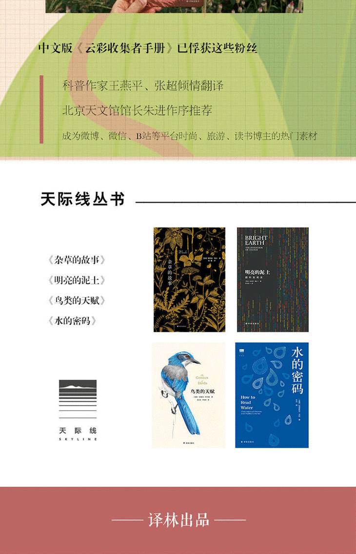王燕平,北京师范大学天体物理硕士毕业,现就职于北京天文馆,副研究员。业余从事大气现象摄影观察记录多年,合著有《云与大气现象》《尊贵的雪花》等气象类科普图书,以及《星空帝国:中国古代星宿揭秘》等天文类作品,合译有《DK 宇宙大百科》《雪花的答案》等图书。
