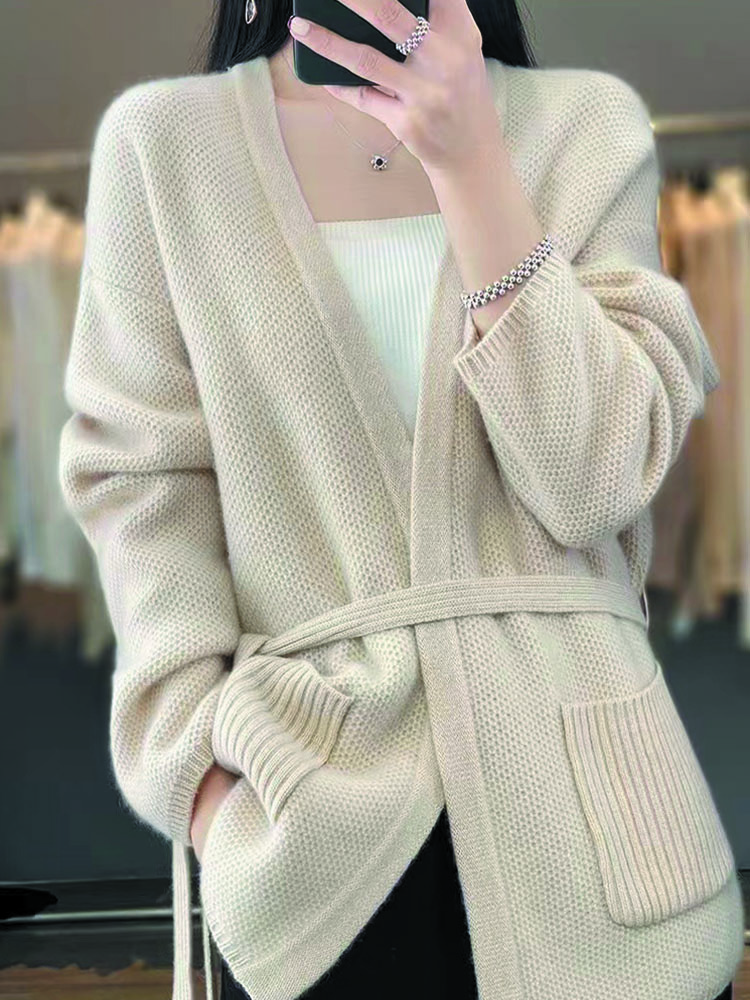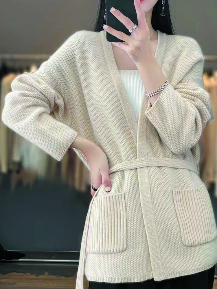 纤束马慵懒软糯系带中长款针织开衫 XFT-0206