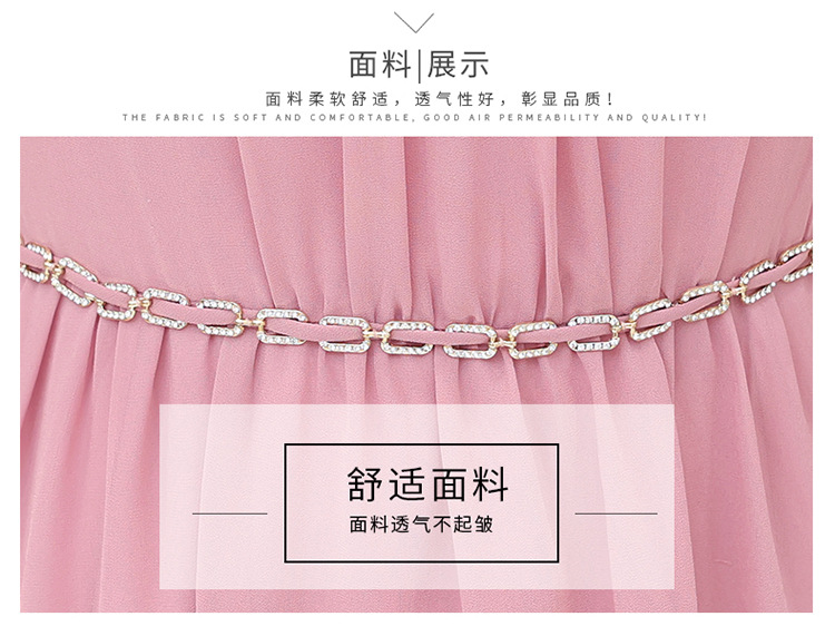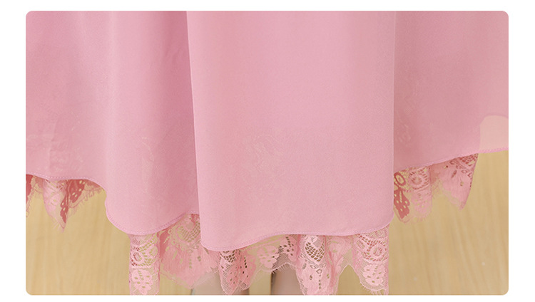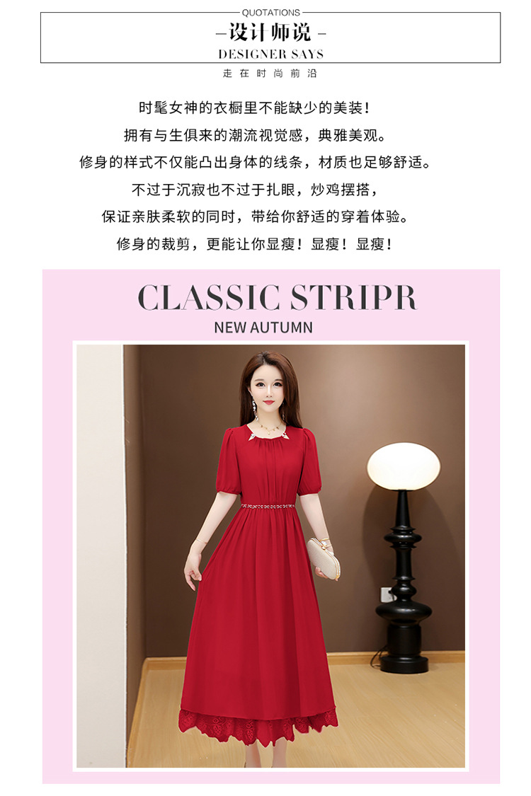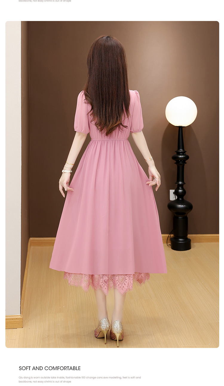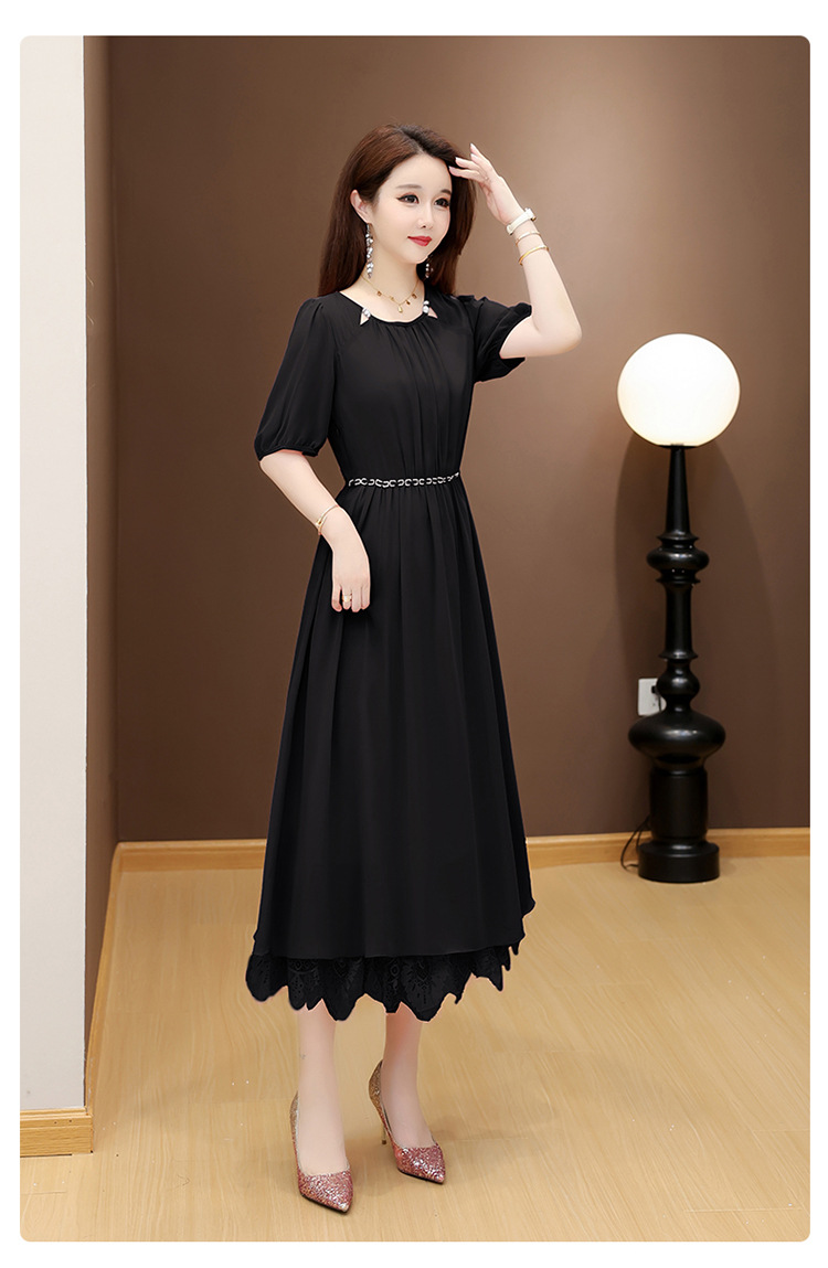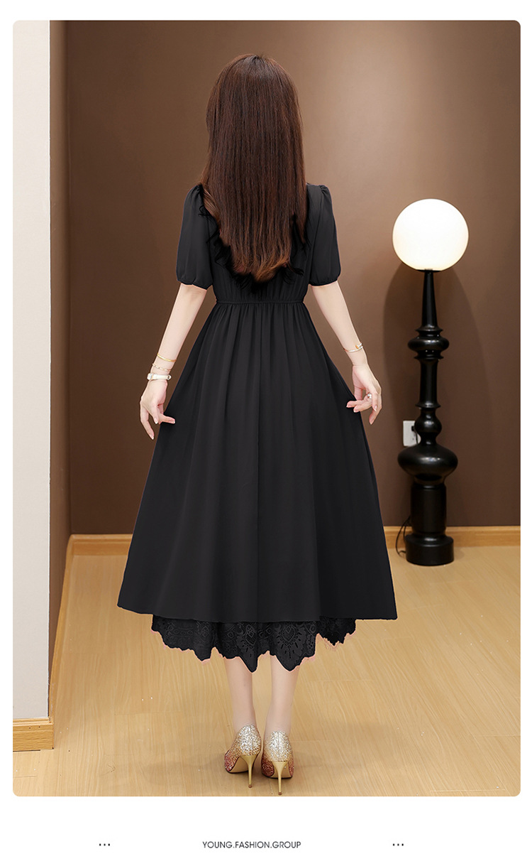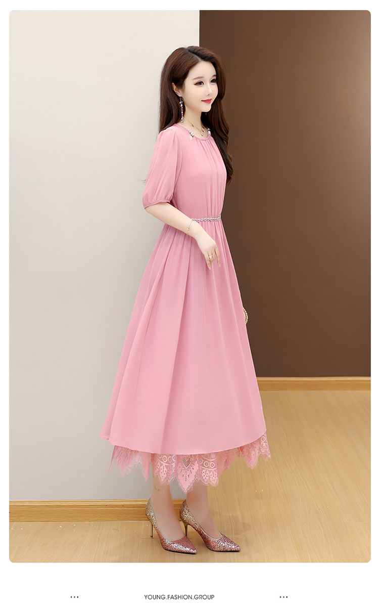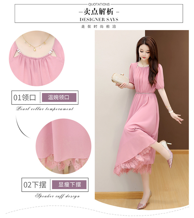 QYM 25X9532-Y雪纺连衣裙百褶裙时尚拼结蕾丝下摆中长裙 商品图2