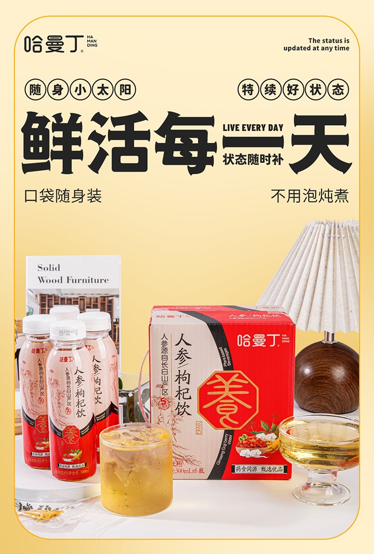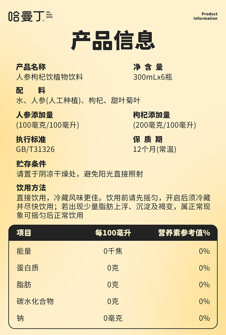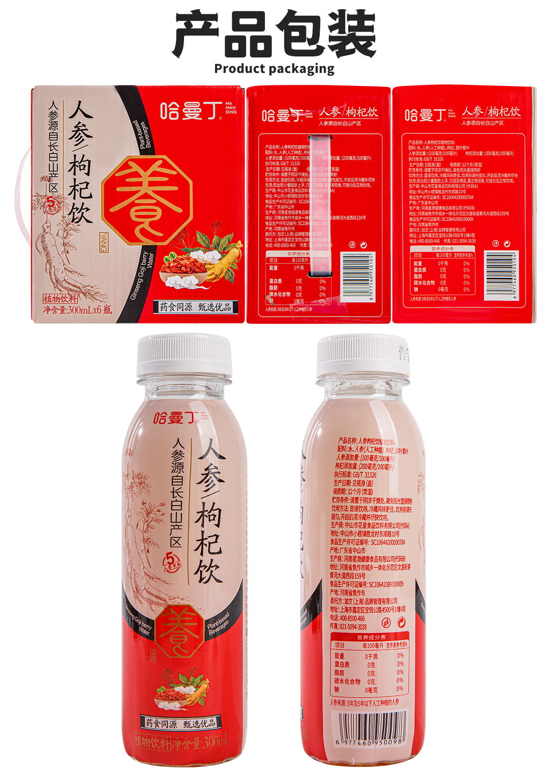 【品名】哈曼丁人参枸杞饮植物饮料 【规格】300mL*6瓶/箱 【保质期】12个月 【储存方法】请置于阴凉干燥处,避免阳光直射 【产地】河南 【发货地】河南 【发货快递】申通 【不发货区域】新疆,西藏,青海,海南,港澳台地区不发 【补邮费地区】北京,上海+1元/件 【发货时效】48小时,节假日顺延 |