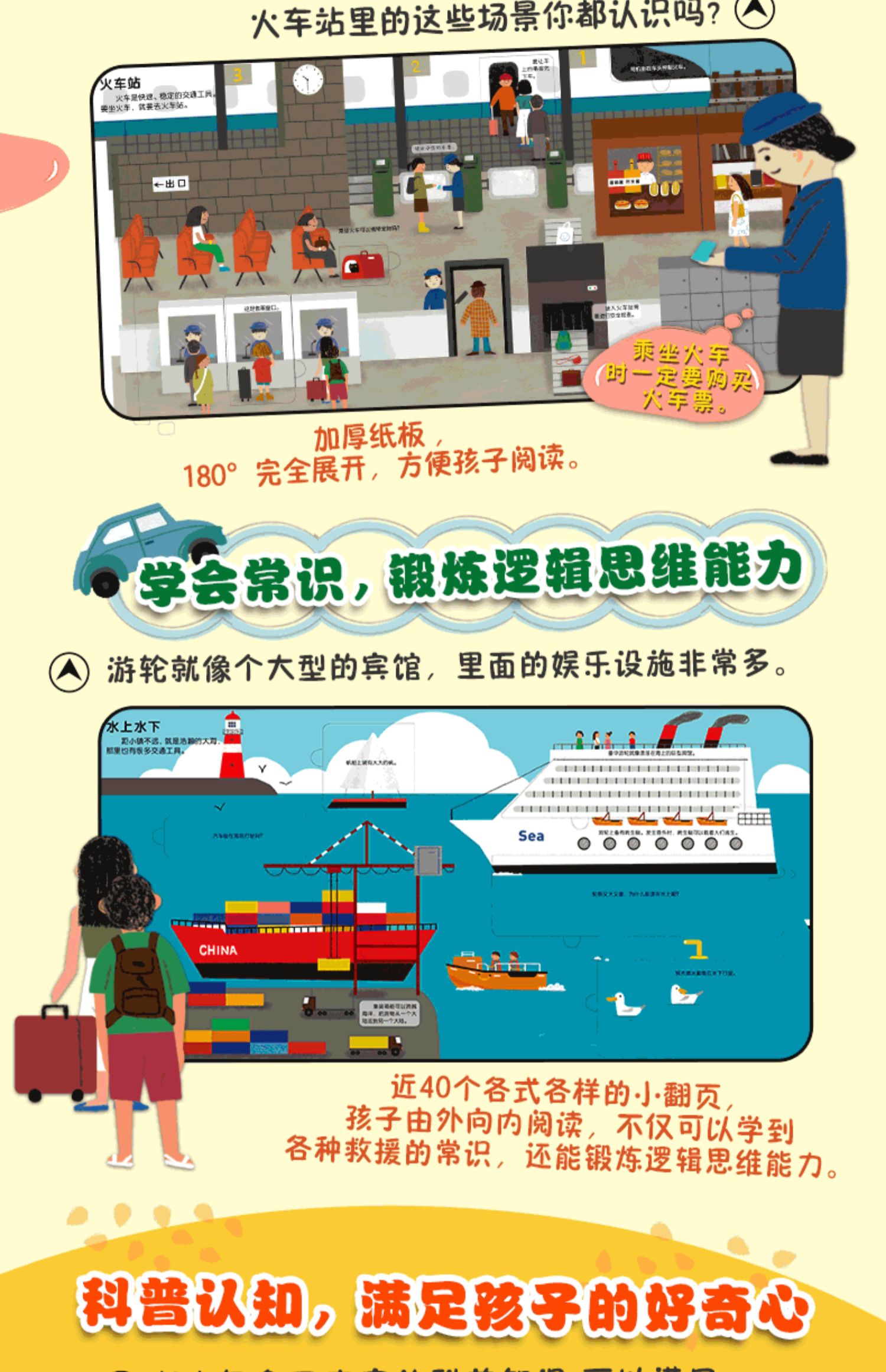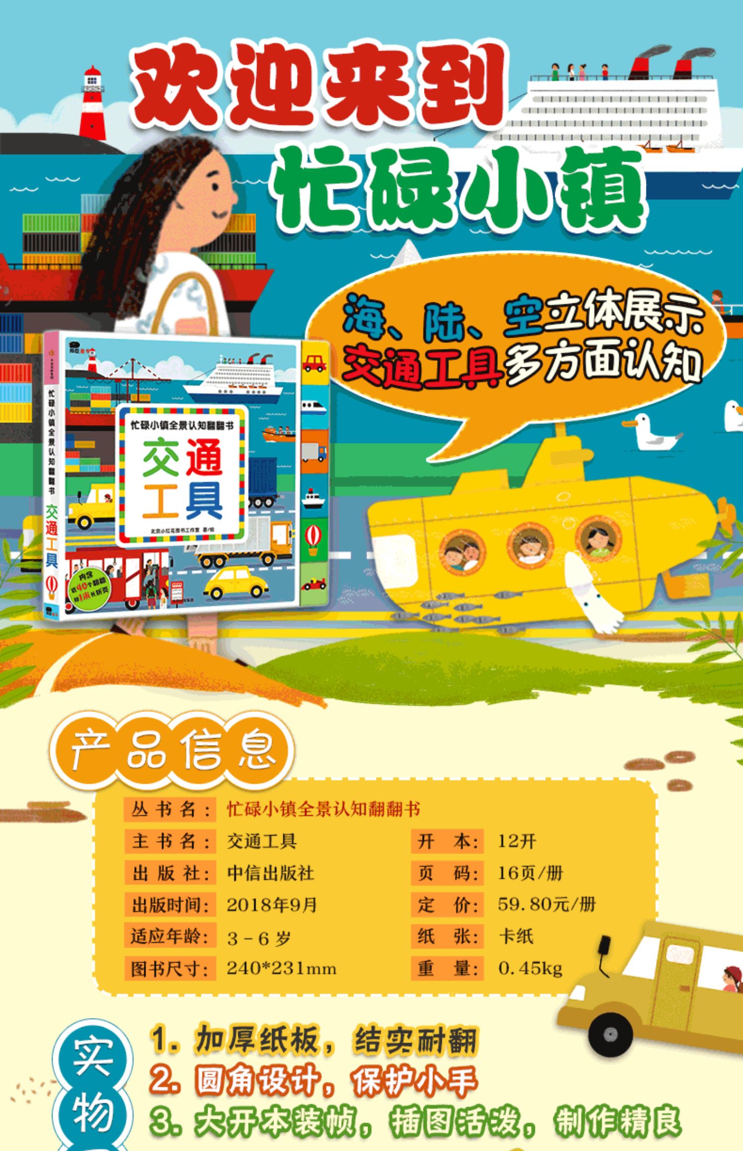 【3-6岁】忙碌小镇全景认知翻翻书 交通工具 北京小红花图书工作室 趣味认知 中信出版社童书 正版书籍
